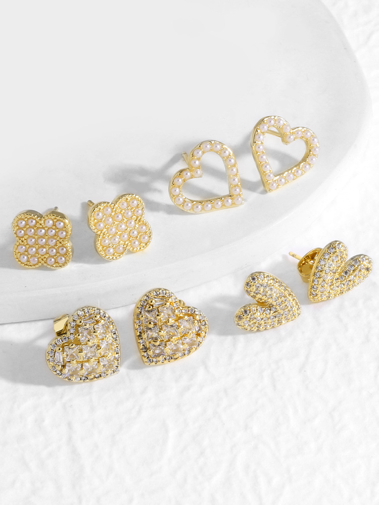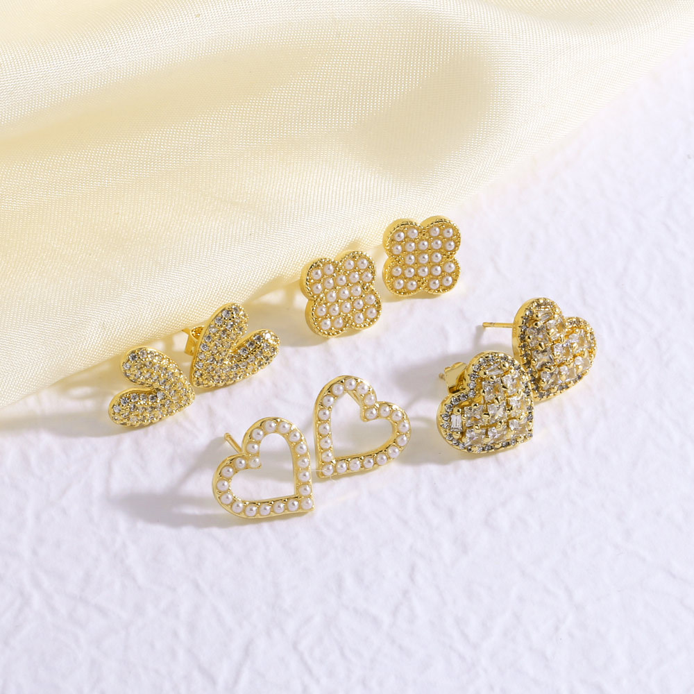 AS jewelry new full zircon pearl love four-leaf clover gold-plated earrings earrings err67 earrings