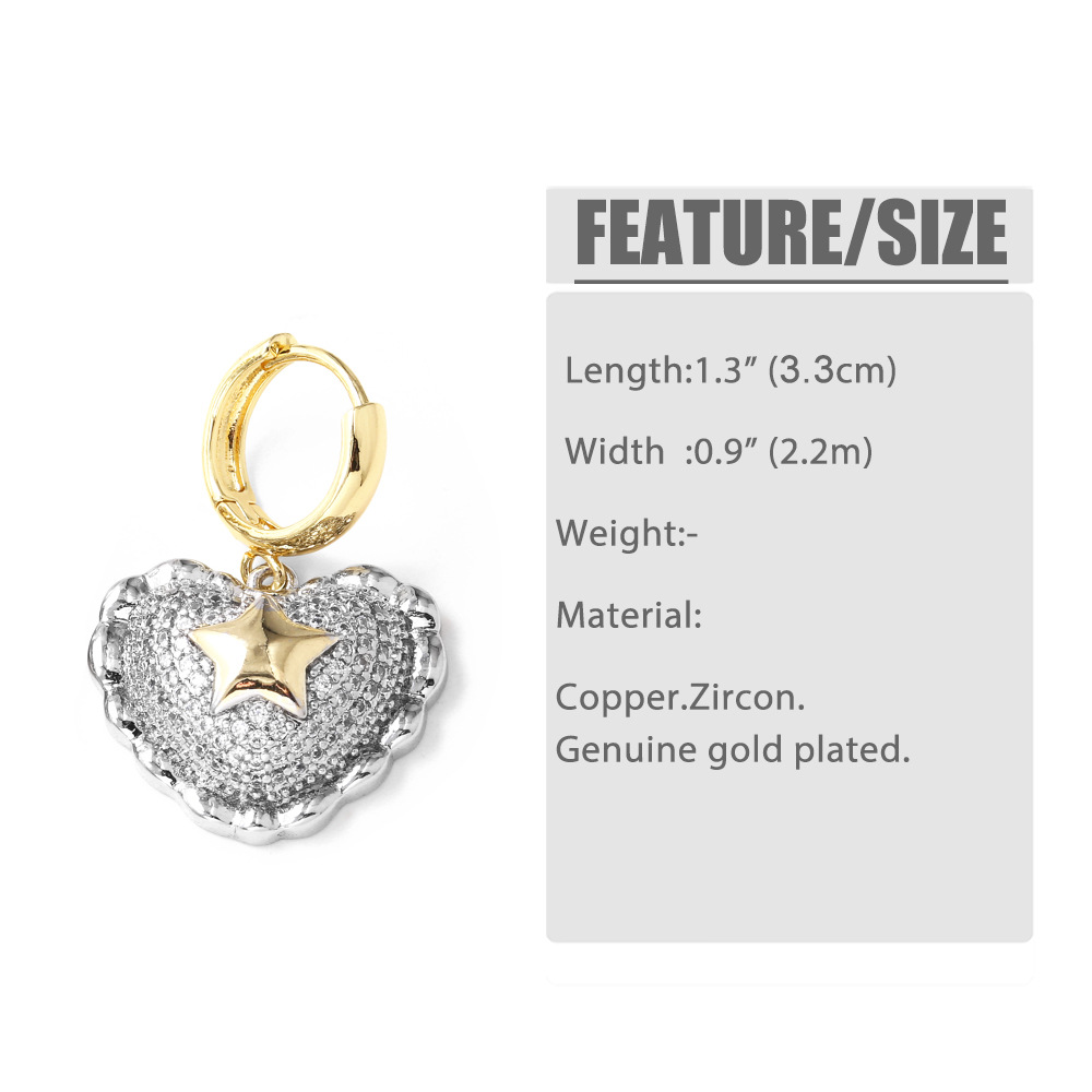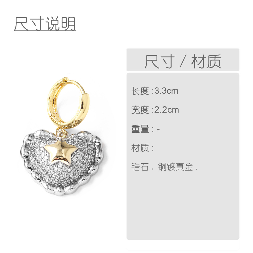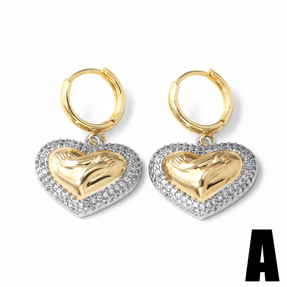 AS jewelry new gold-plated two-color zircon love heart-shaped cross earrings earrings erz20