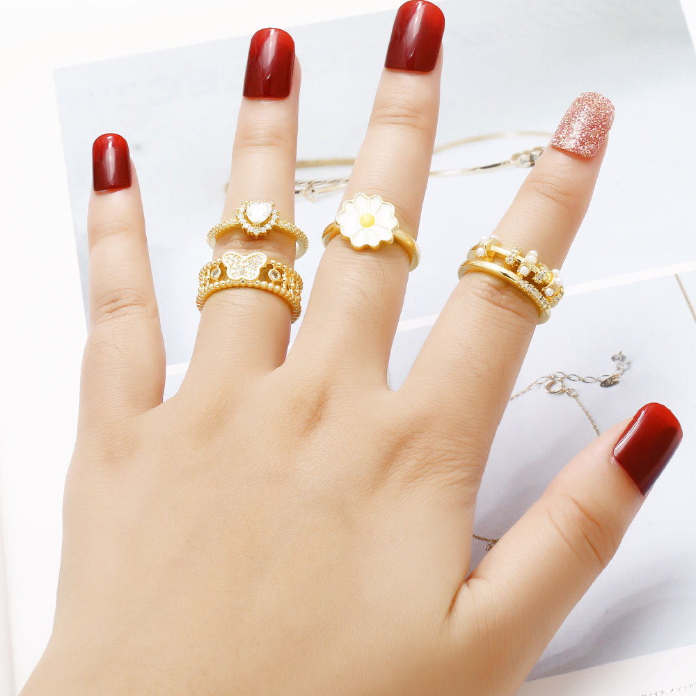 AS jewelry new hot selling chrysanthemum ring female copper plated 18k gold love heart shaped zircon ring rin64