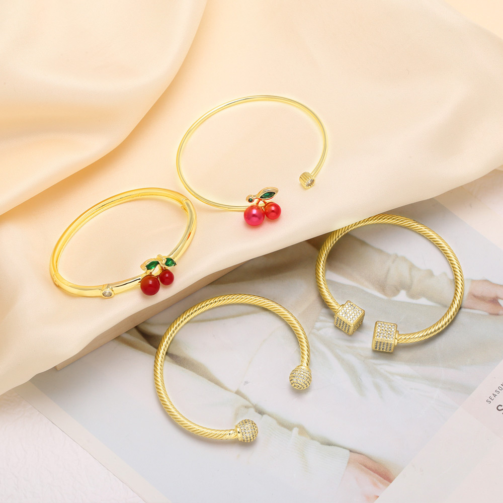 AS jewelry new hot selling fruit cherry full zircon cube gold-plated bracelet bracelet bre91 bangle