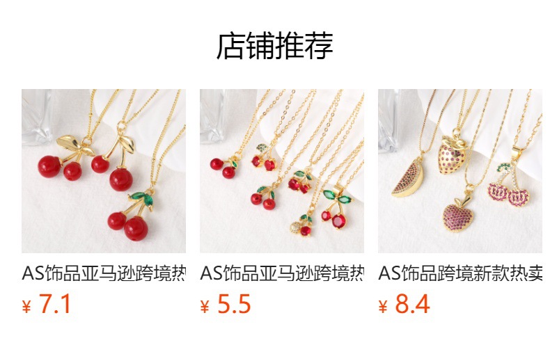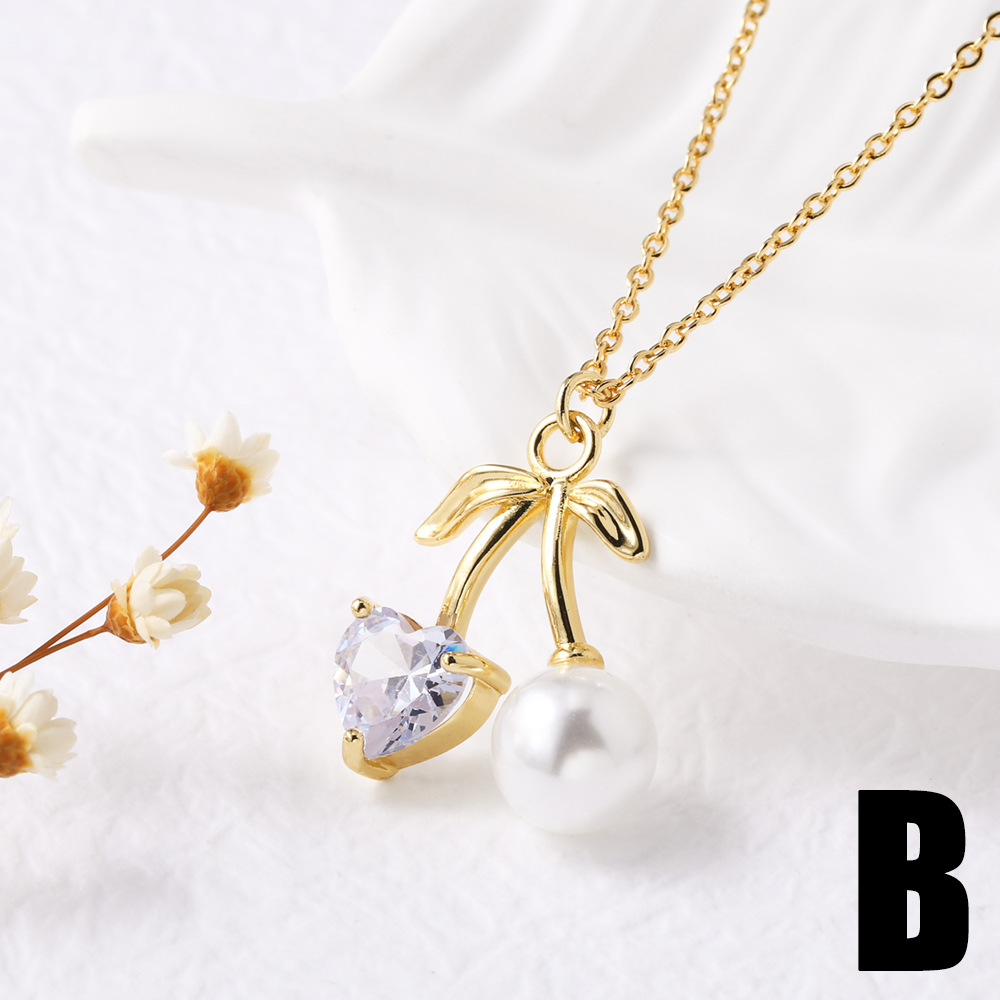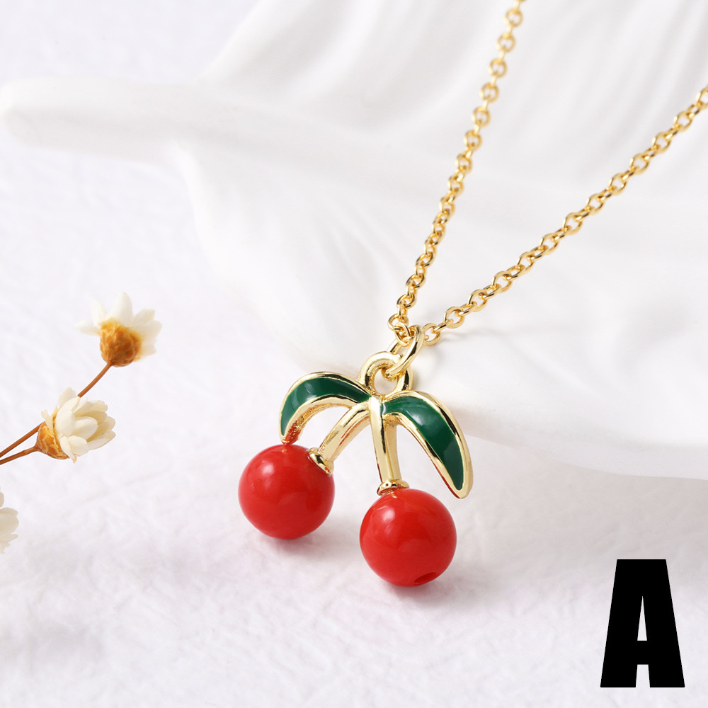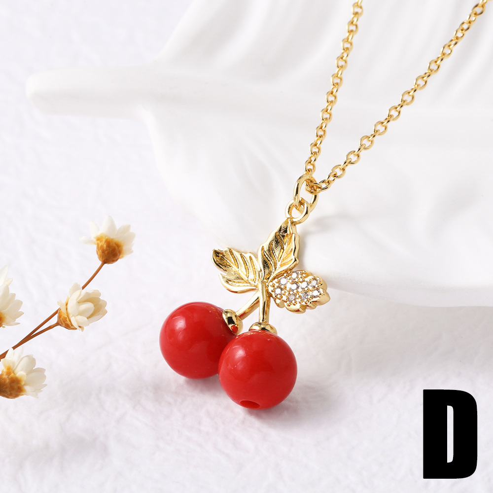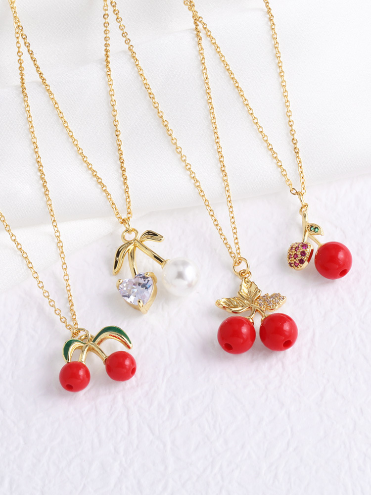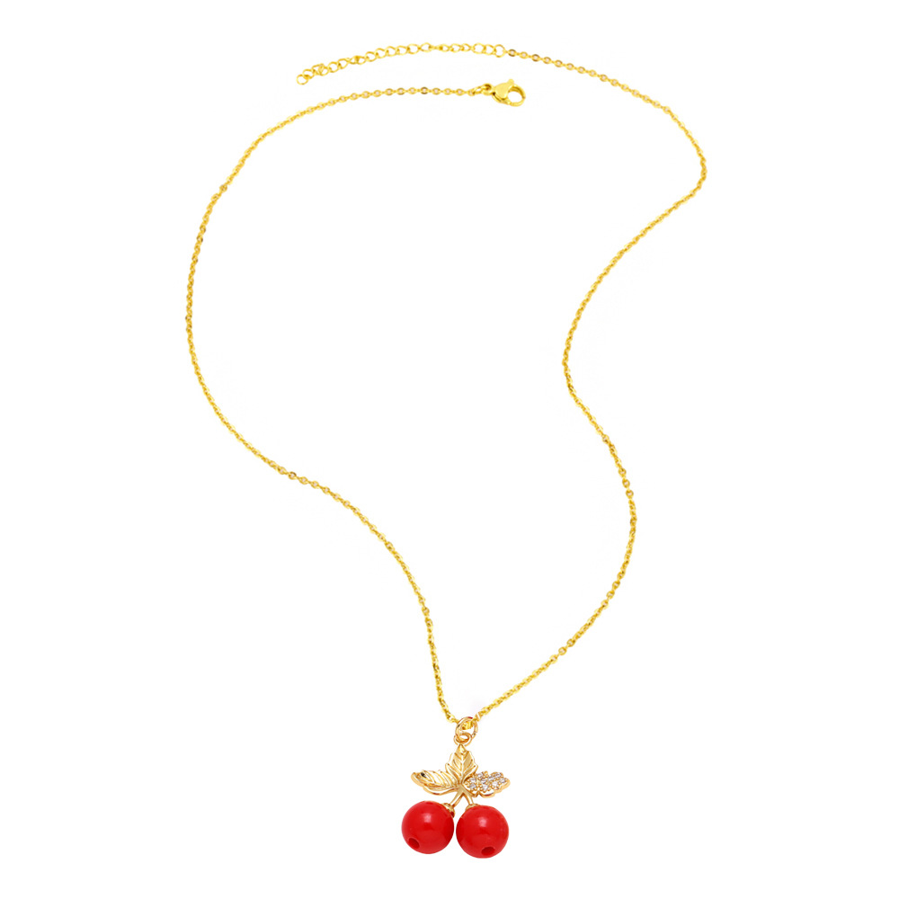 AS jewelry new hot selling fruit cherry pendant necklace copper plated 18k gold clavicle chain nkb214