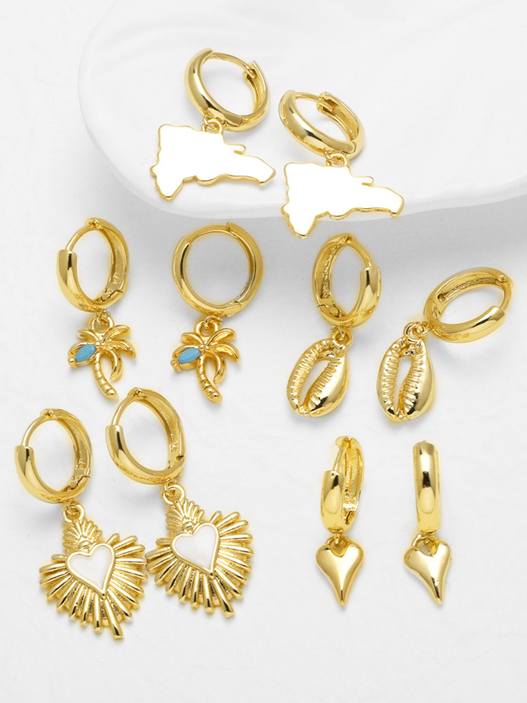 AS jewelry new hot selling glossy love map coconut tree pendant 18k gold earrings earrings era048