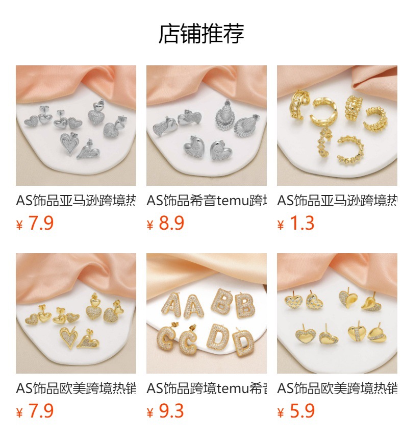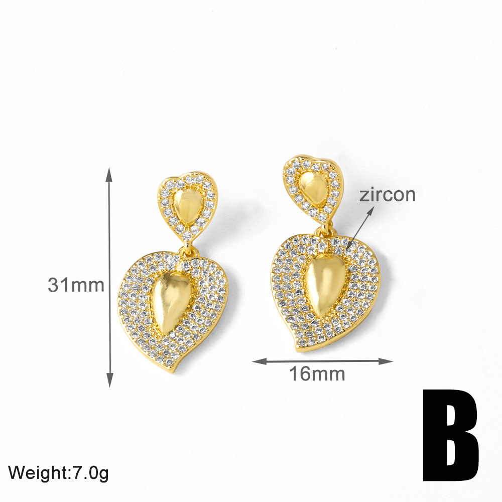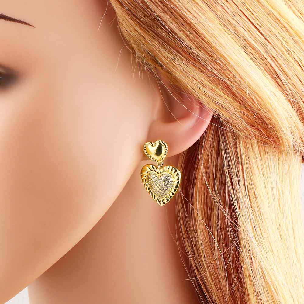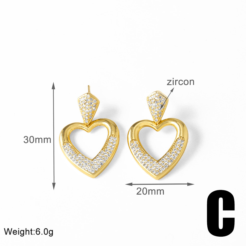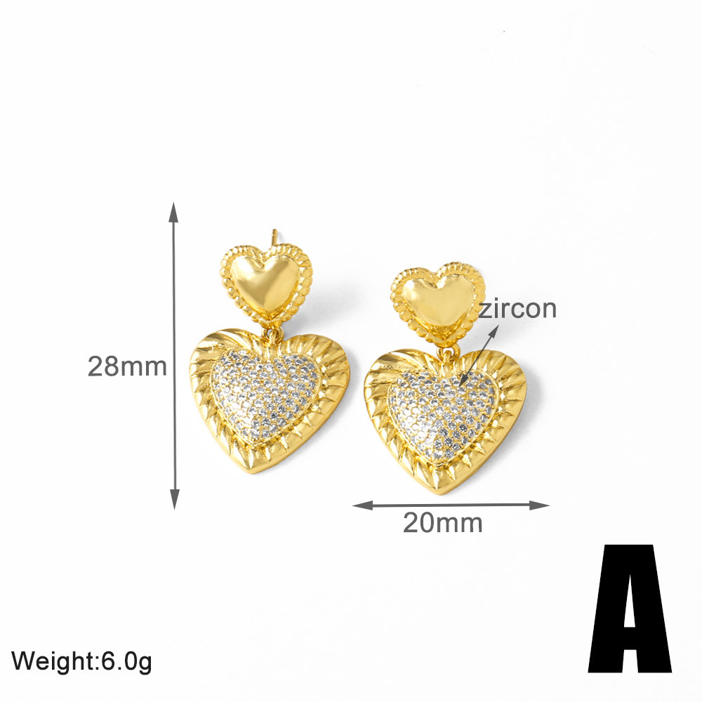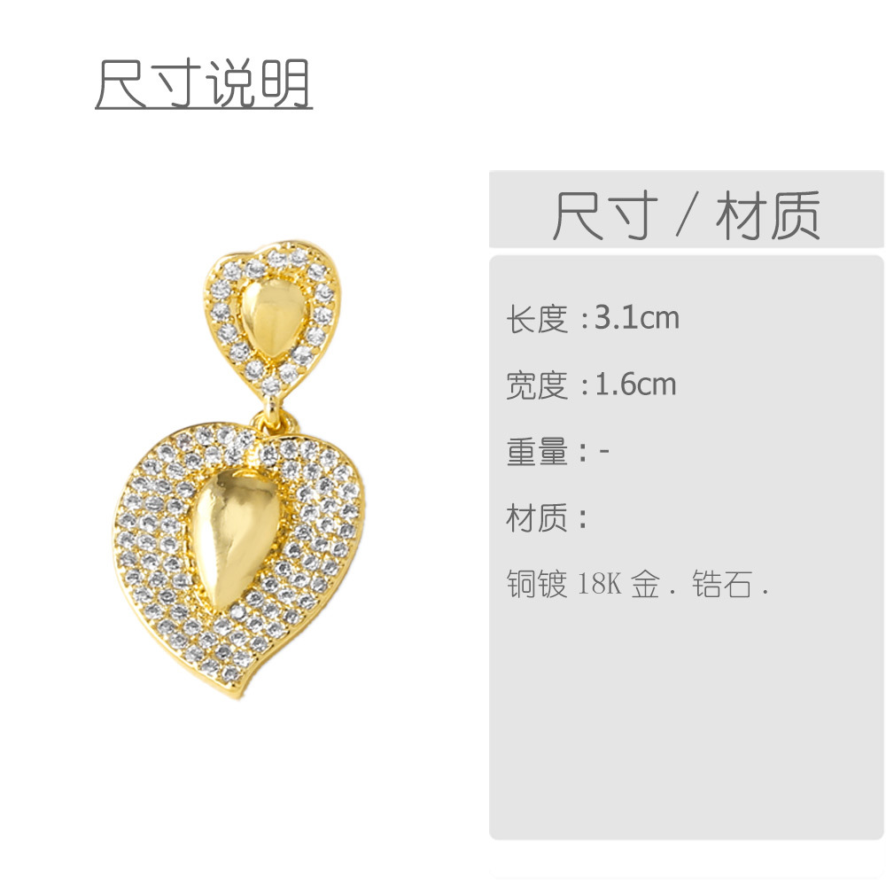 AS jewelry new hot selling love copper plated real gold earrings female inlaid with zircon heart-shaped earrings era393