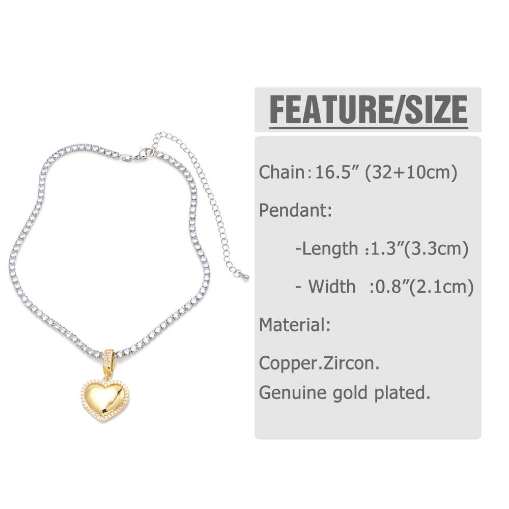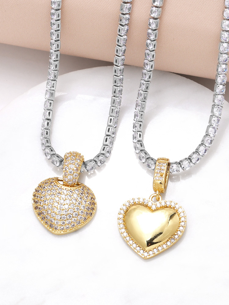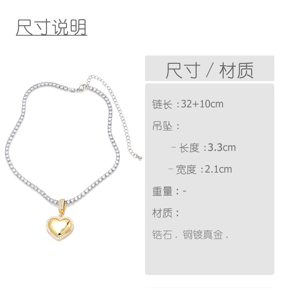 AS jewelry new hot selling love heart pendant necklace copper plated real gold full zircon clavicle chain nkb627