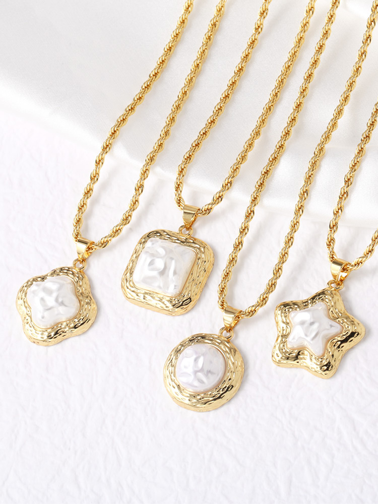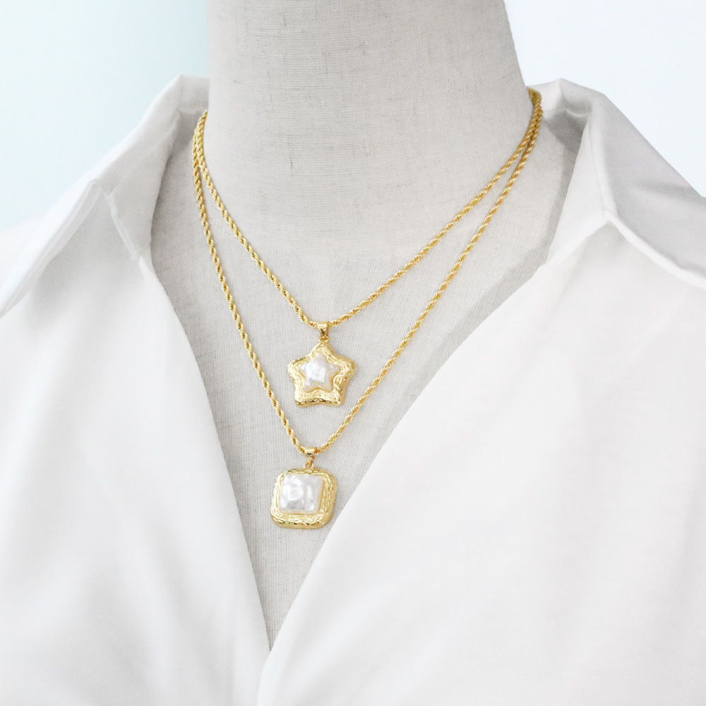 AS jewelry new hot selling pearl five-pointed star copper plated 18k gold pendant necklace sweater chain nkb050