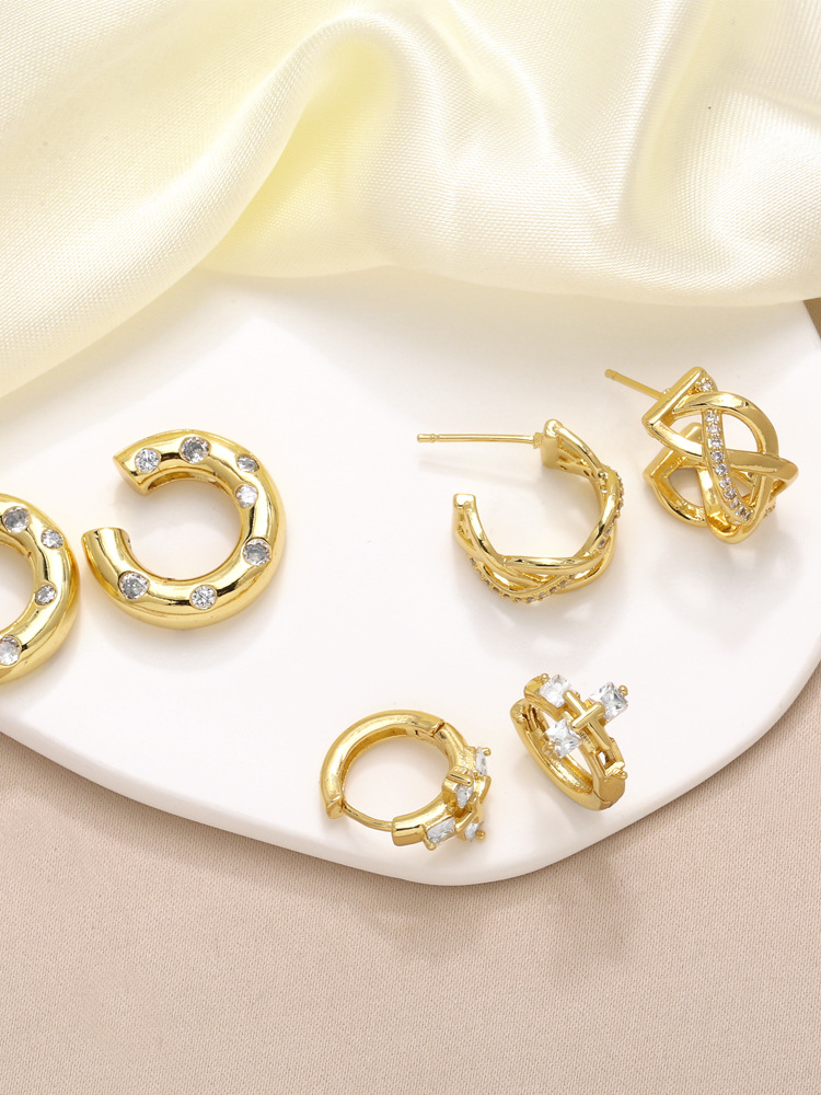AS jewelry new hot selling round ear clip female high-grade gold-plated zircon earrings earrings erv24