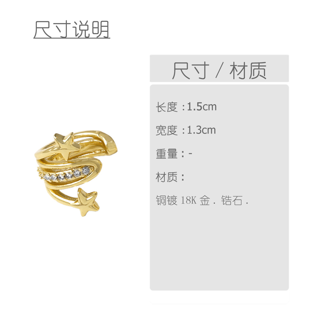 AS jewelry new hot selling star copper plated 18k ear bone clip earrings era073 ear cuff