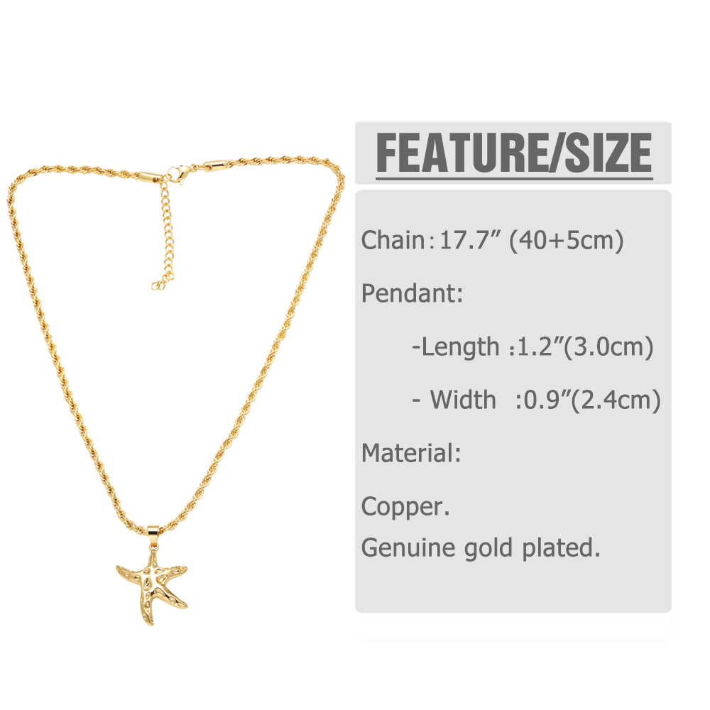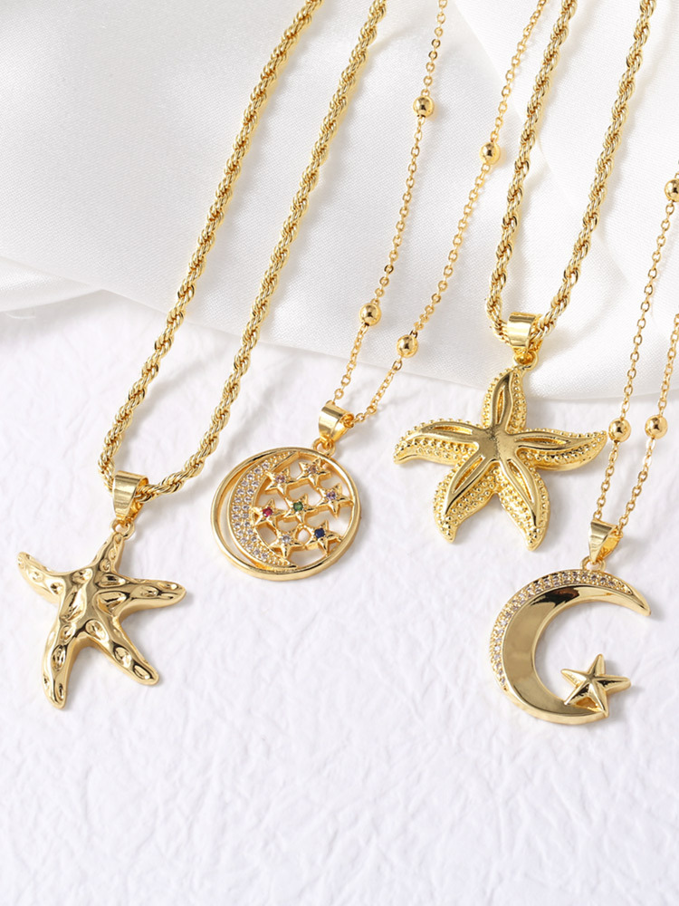 AS jewelry new hot selling star moon pendant necklace copper plated 18k gold starfish clavicle chain nkp93