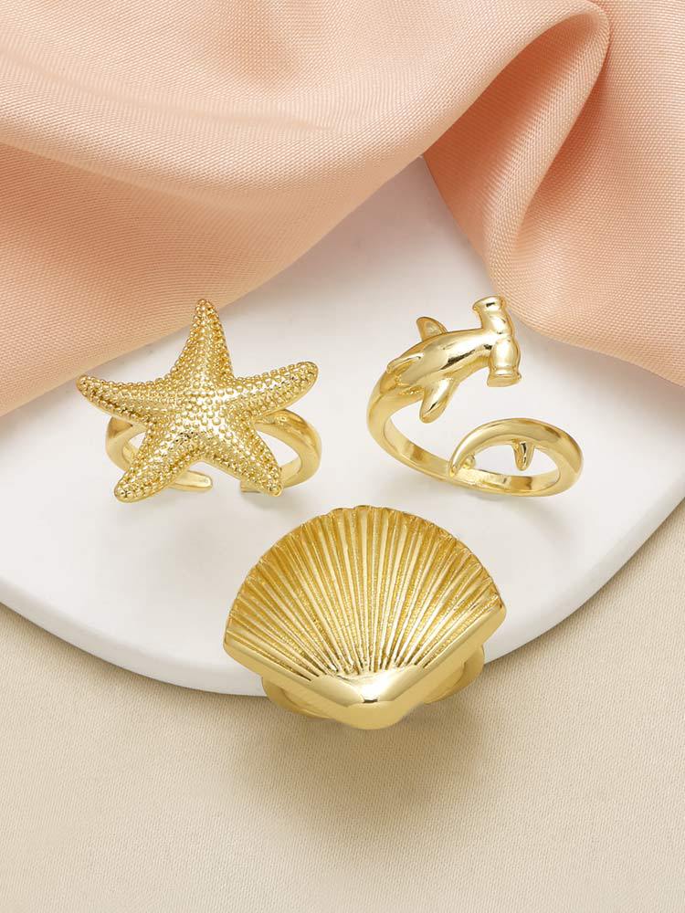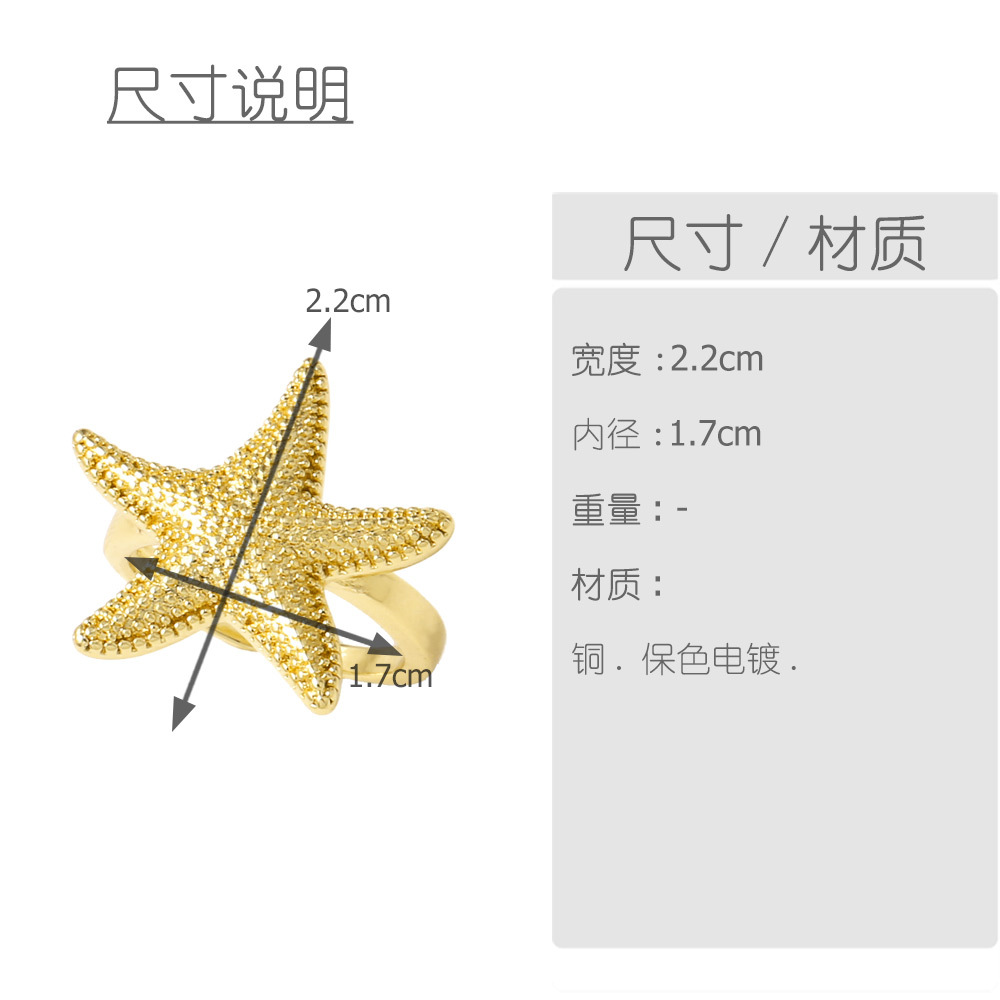AS jewelry new hot selling starfish shell open ring female copper plated 18k gold shark ring rih59