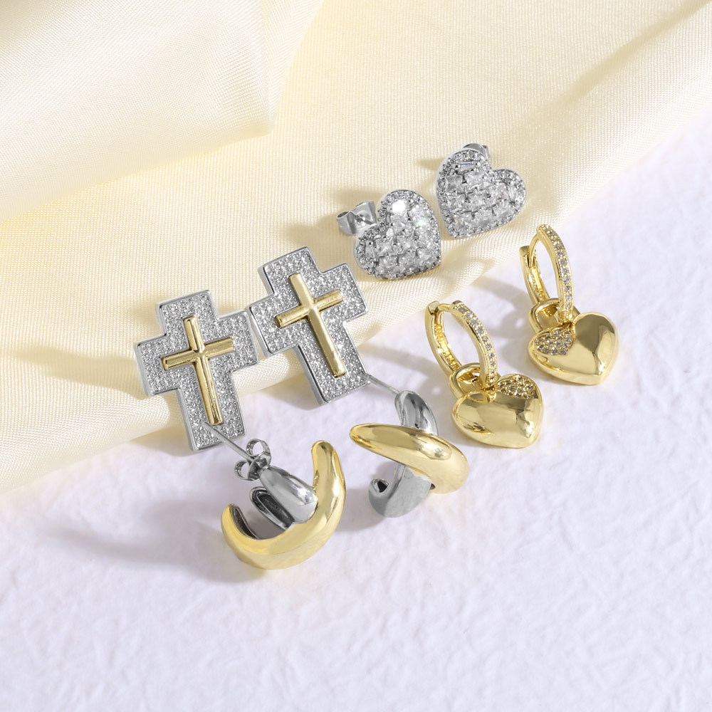 AS jewelry new hot selling two-color cross heart pendant earrings erw27 earrings