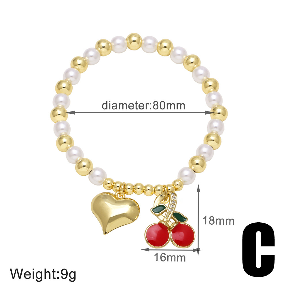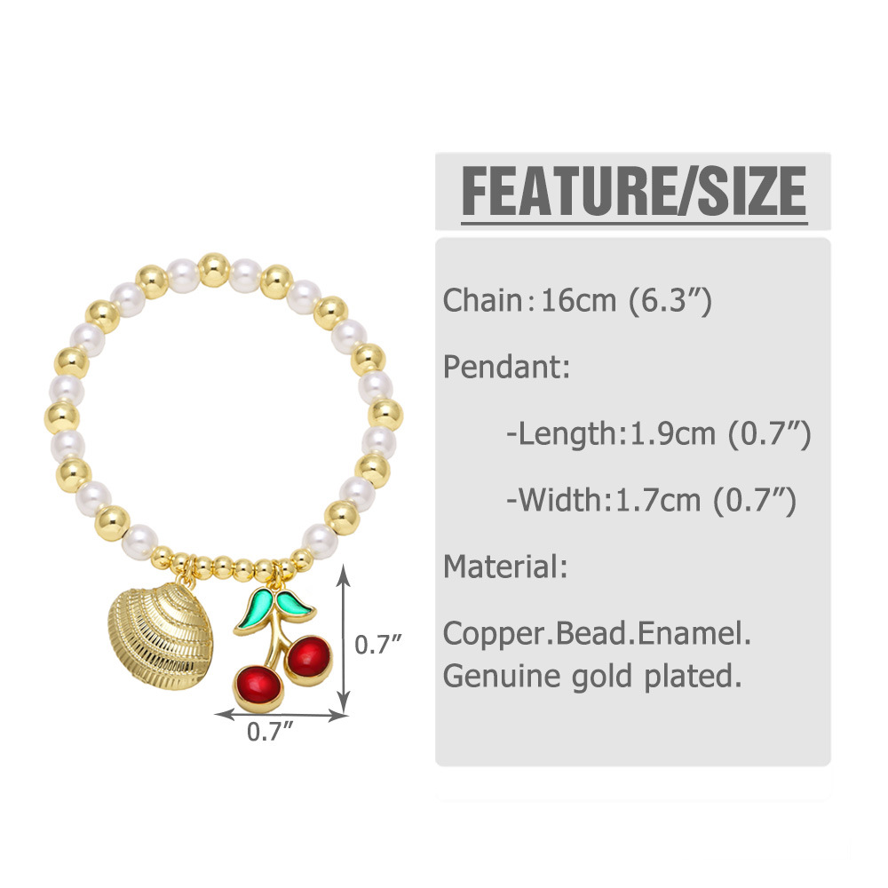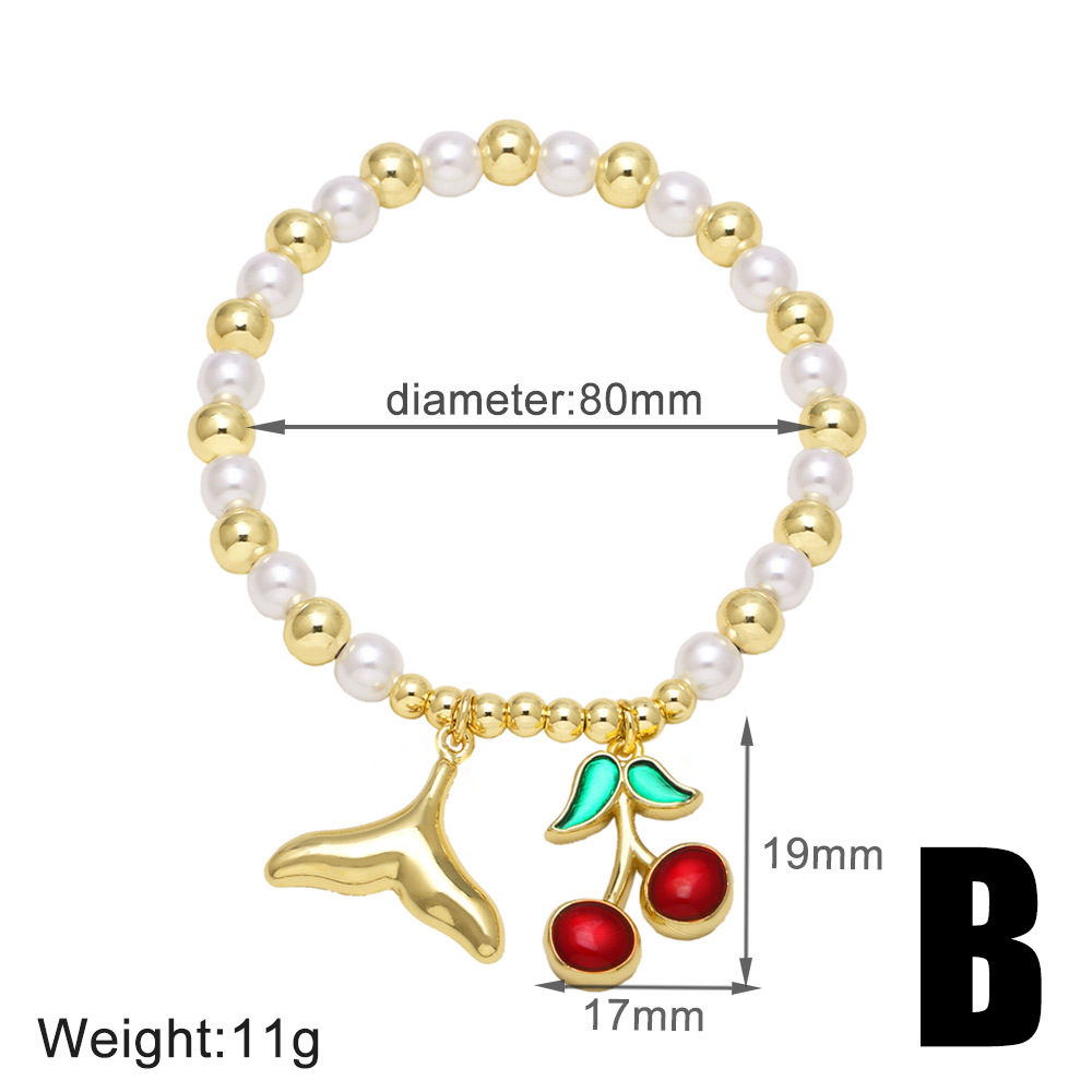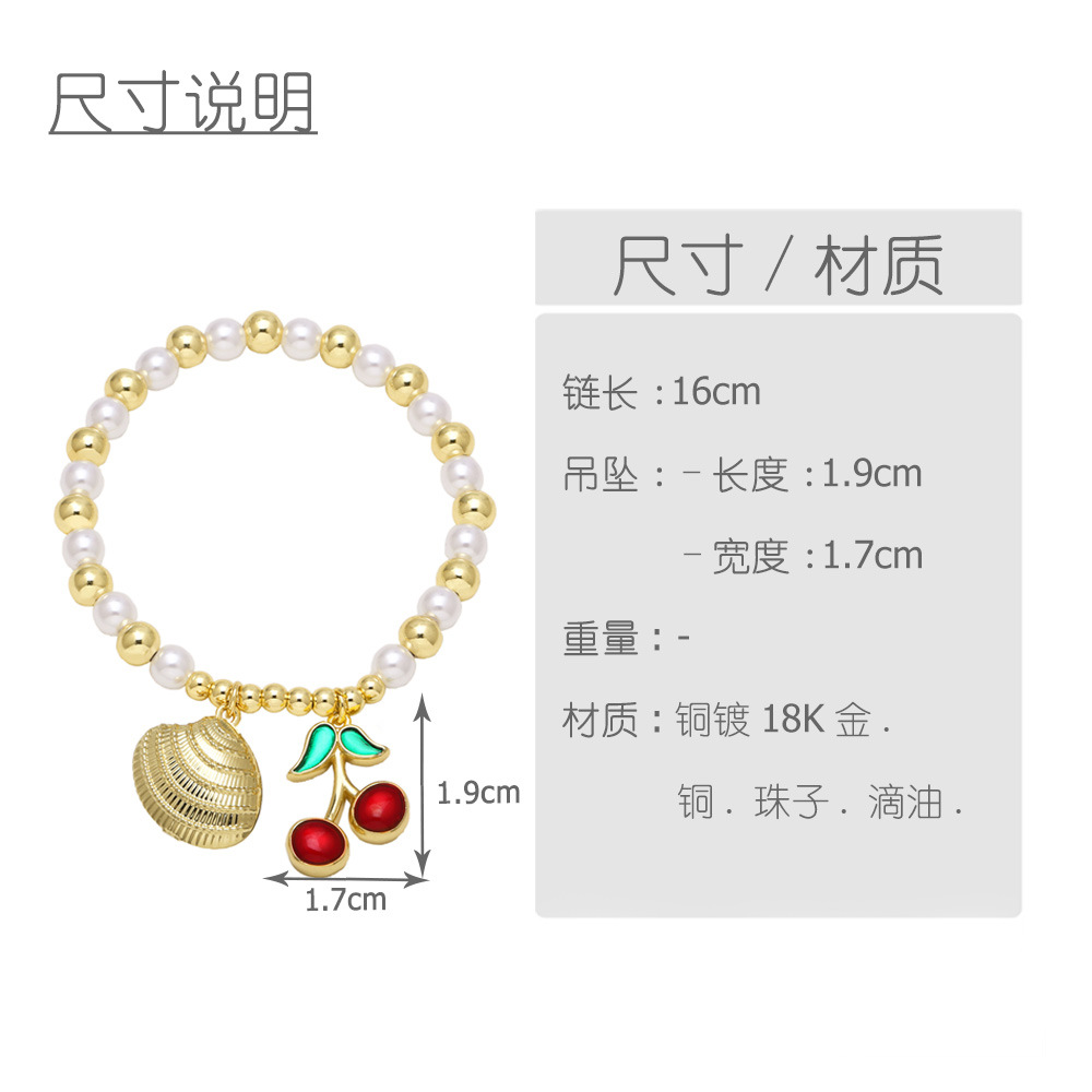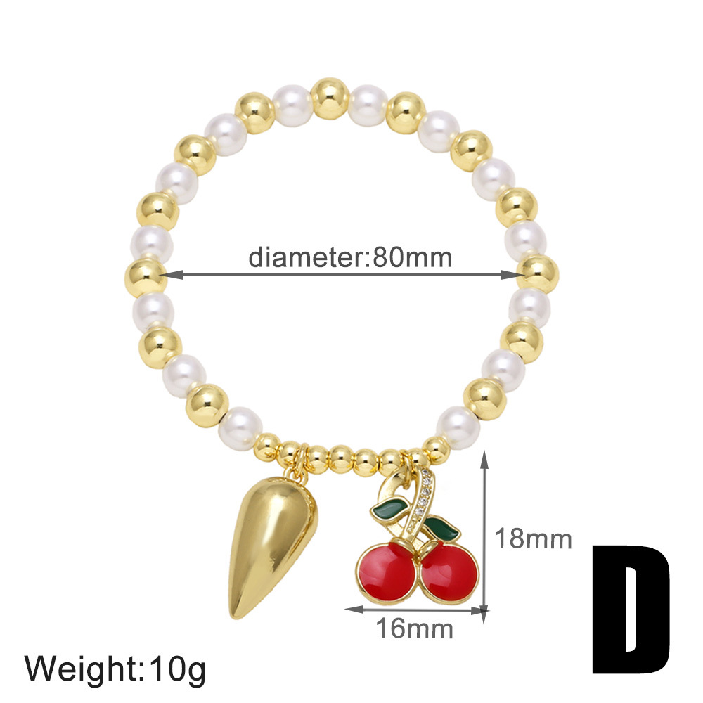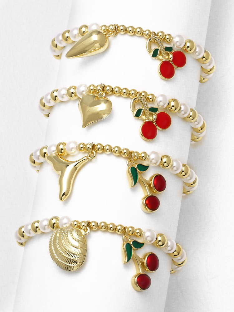 AS jewelry new hot style copper plated real gold pearl beaded fruit cherry love bracelet jewelry brm94