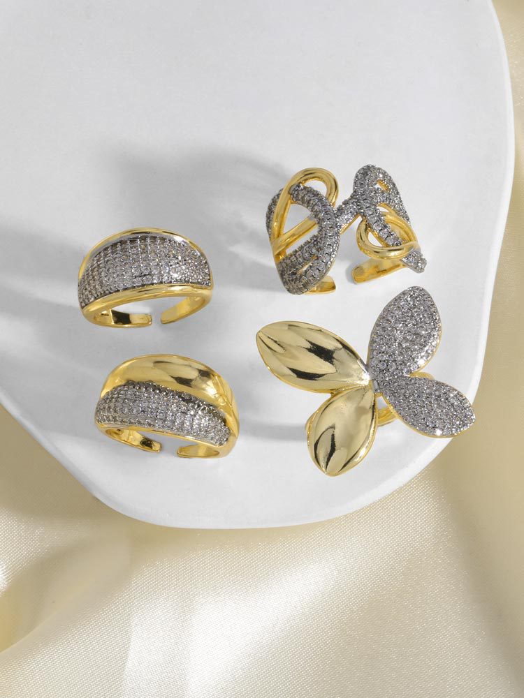 AS jewelry new hot style two-color inlaid zircon irregular open ring ring female rir49