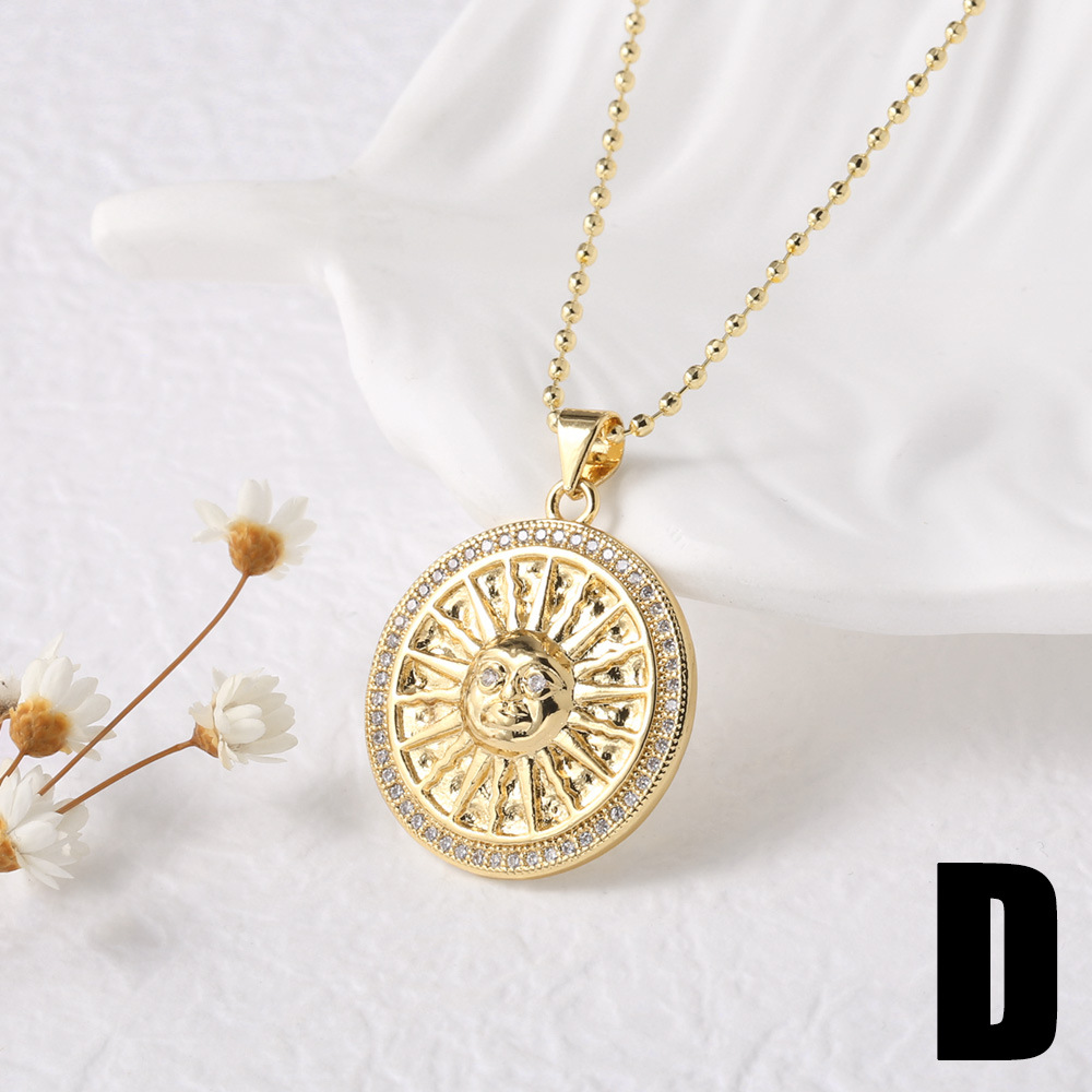 AS jewelry retro sun pendant necklace copper plated real gold five-pointed star clavicle chain nkz04
