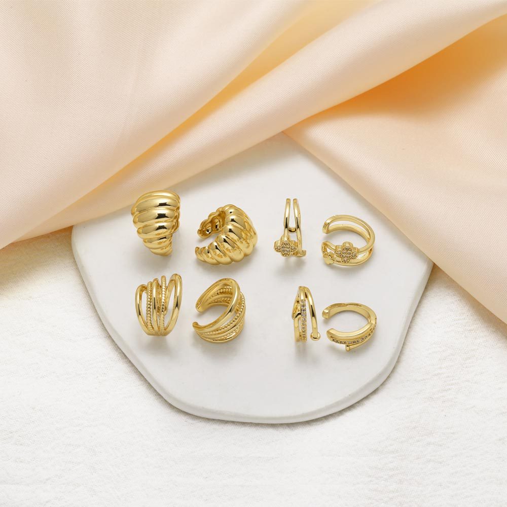 AS jewelry new multi-layer C-shaped earrings female copper plated 18k gold polished ear clip earrings era281
