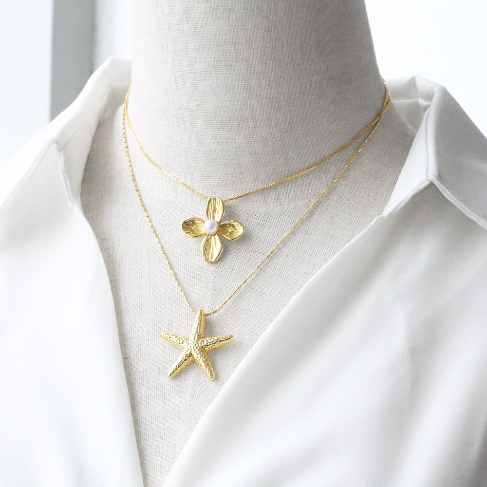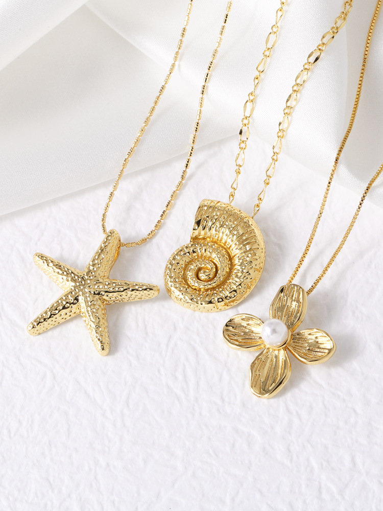 AS jewelry new ocean style pearl conch starfish copper plated 18k gold necklace clavicle necklace female nkb593