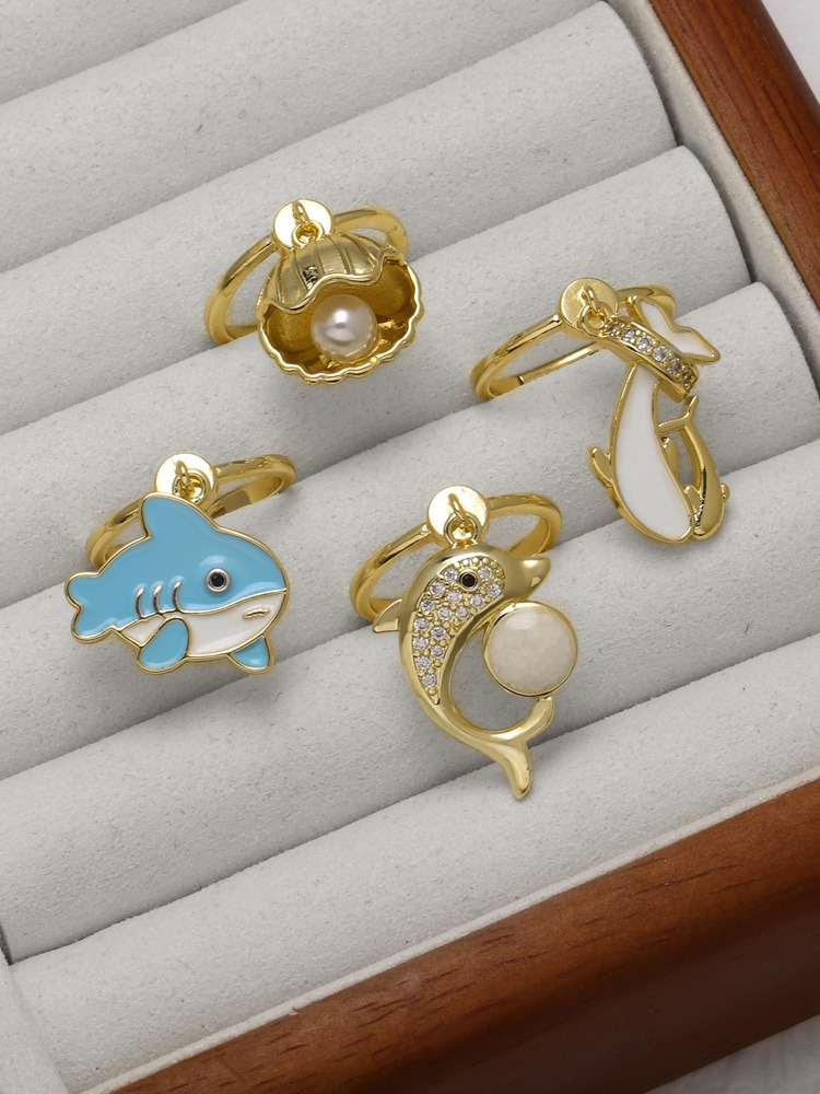 AS jewelry new ocean wind drop oil dolphin shell gold-plated open ring ring rip68