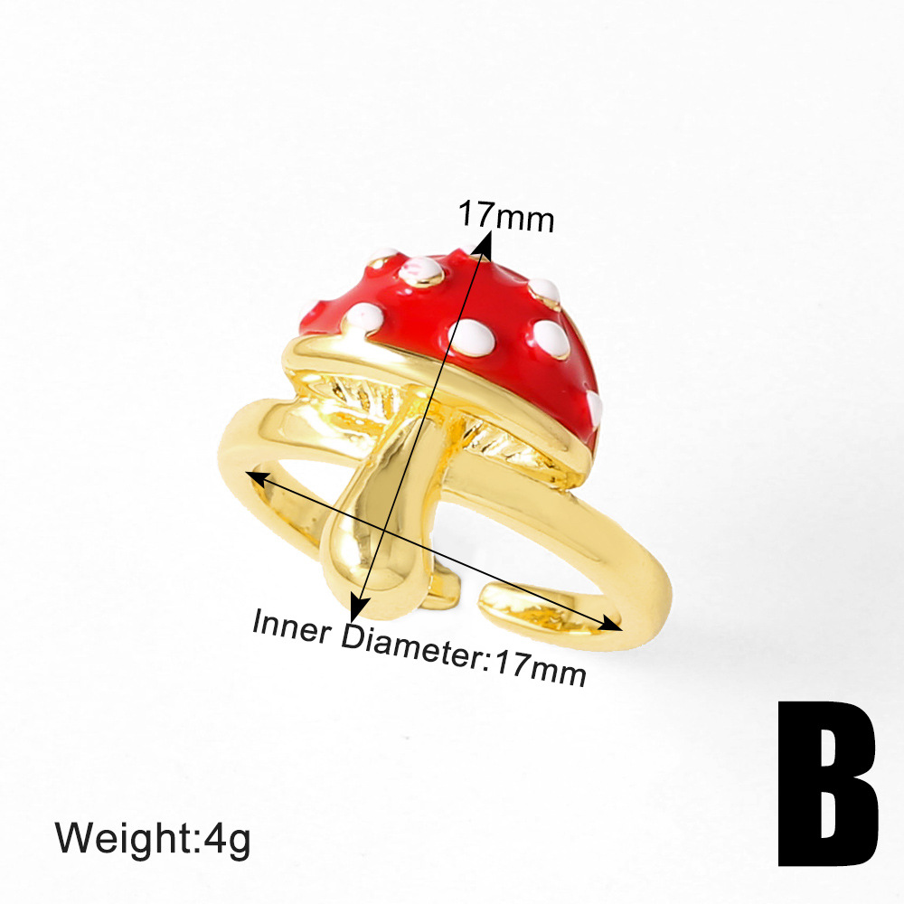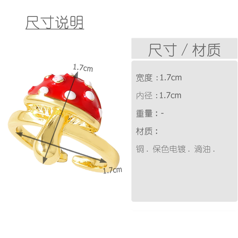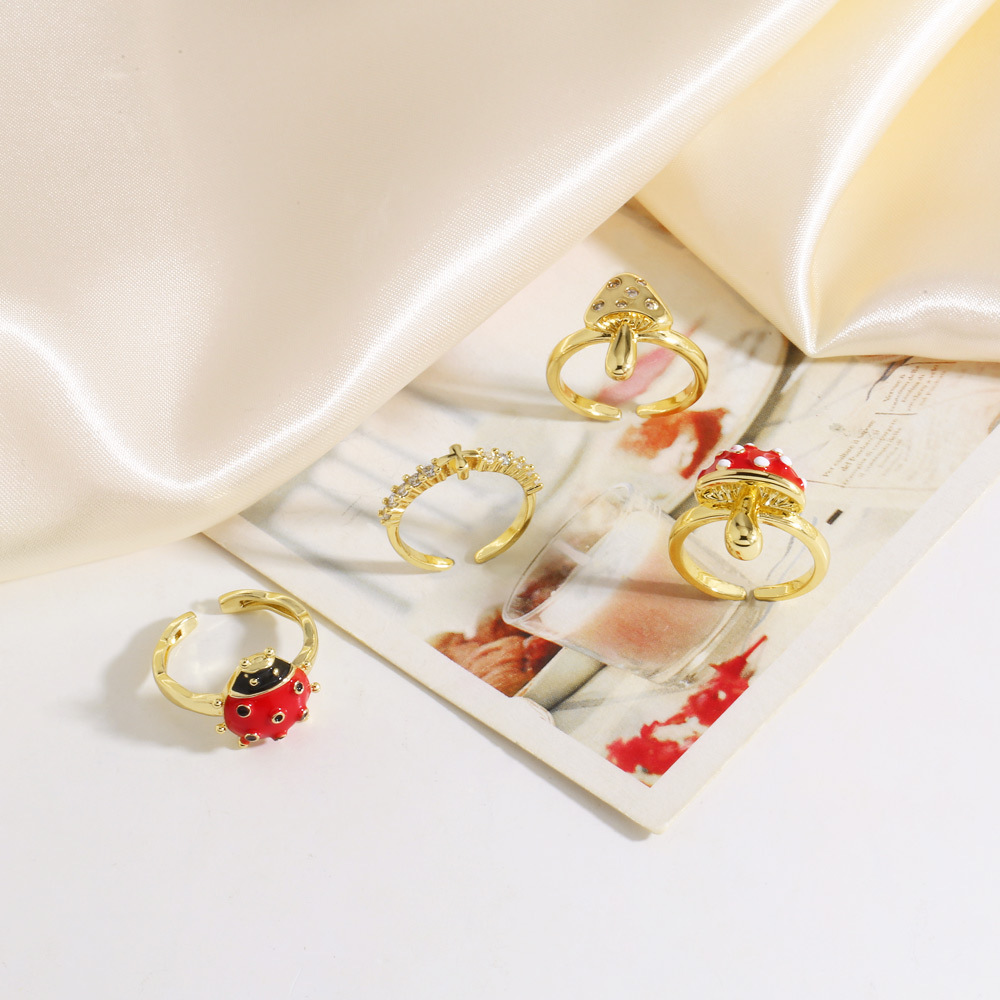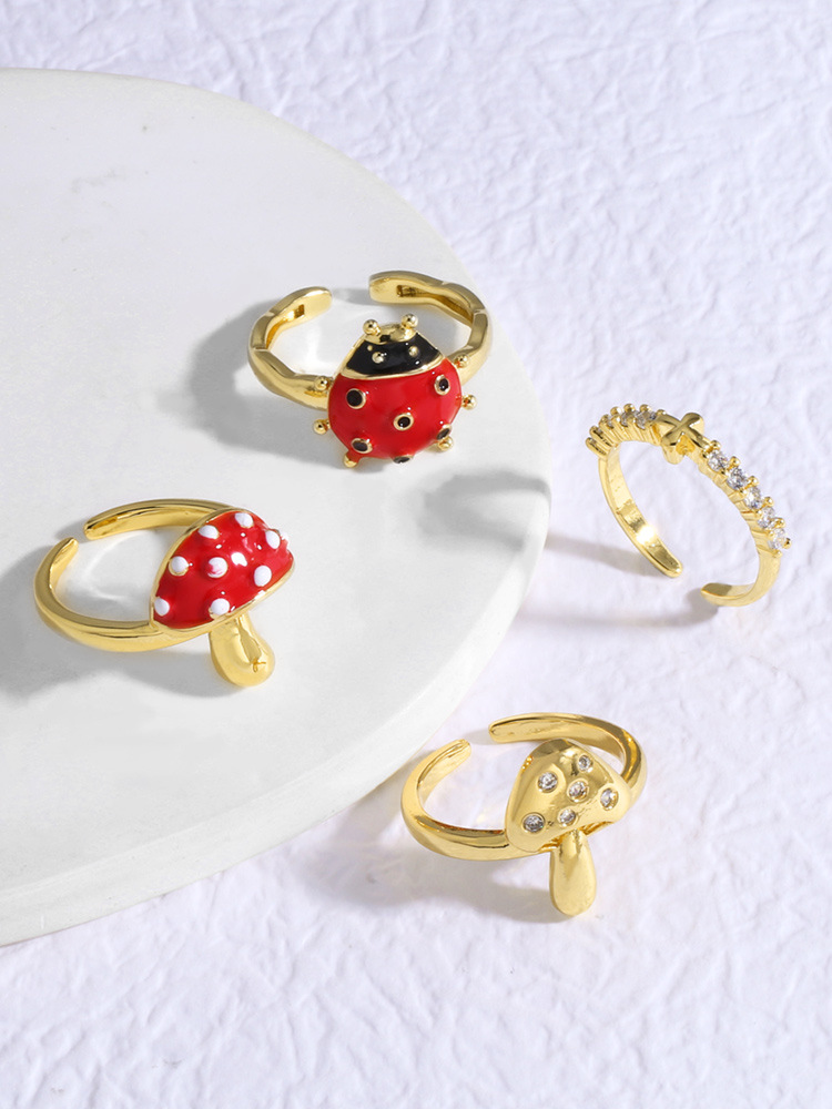 AS jewelry new oil drip mushroom insect gold plated open ring ring female rij18 ring