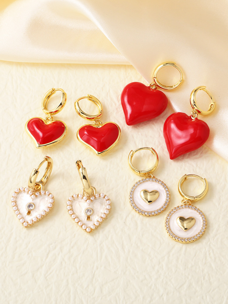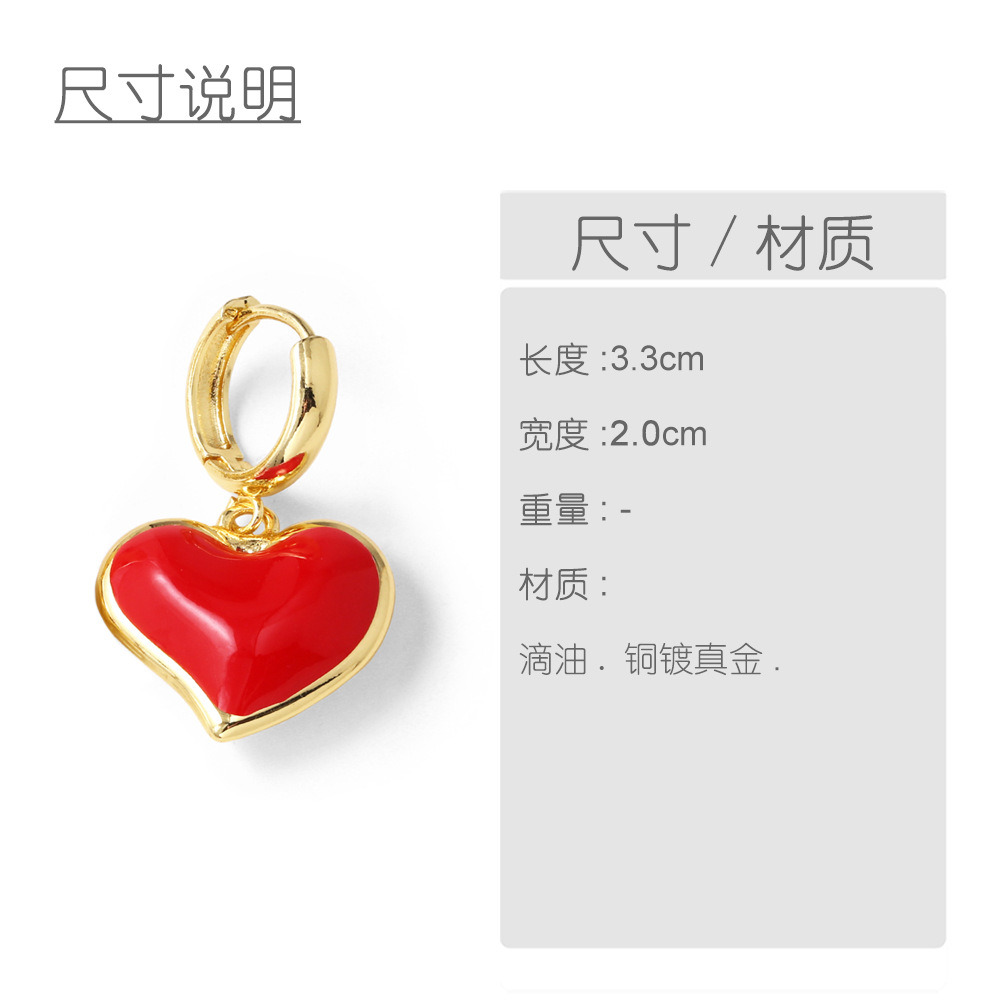 AS jewelry new oil drop red love peach heart earrings ear buckle earrings female erv80 ring