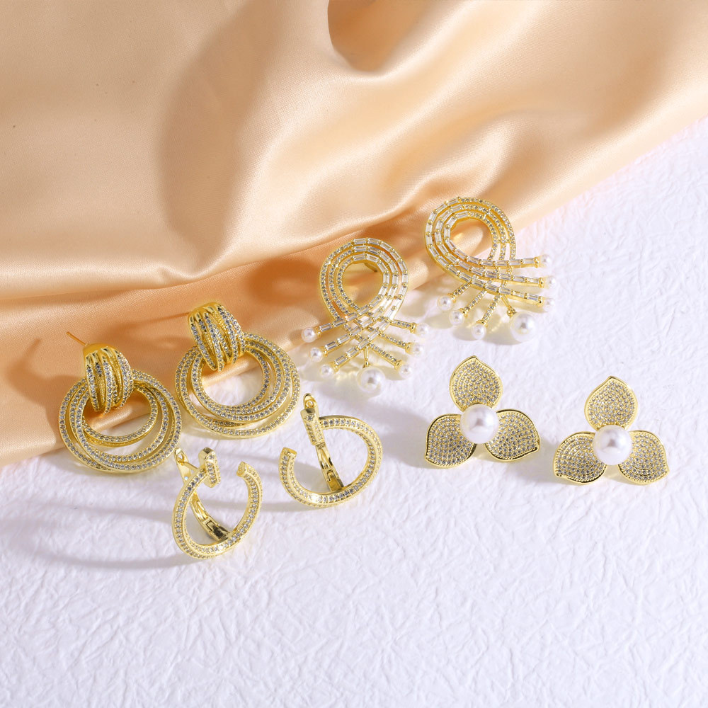 AS jewelry new pearl flower full zircon earrings earrings earrings err76 earrings