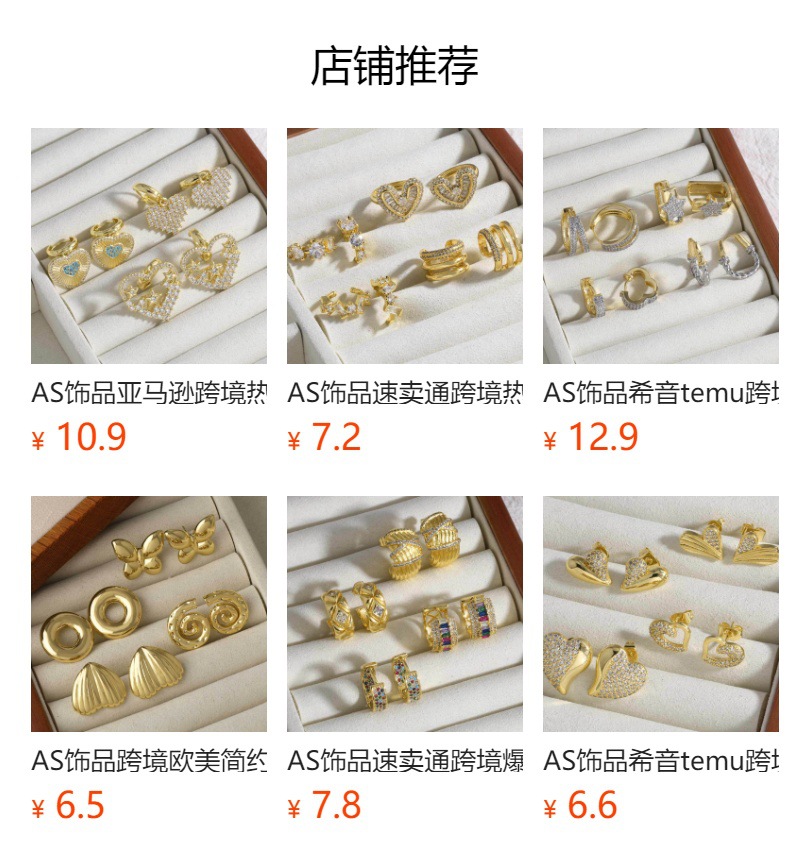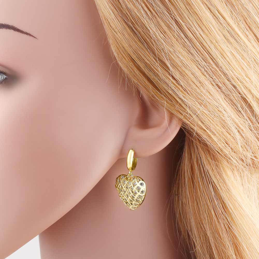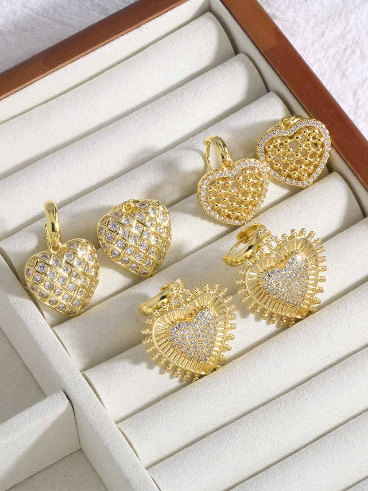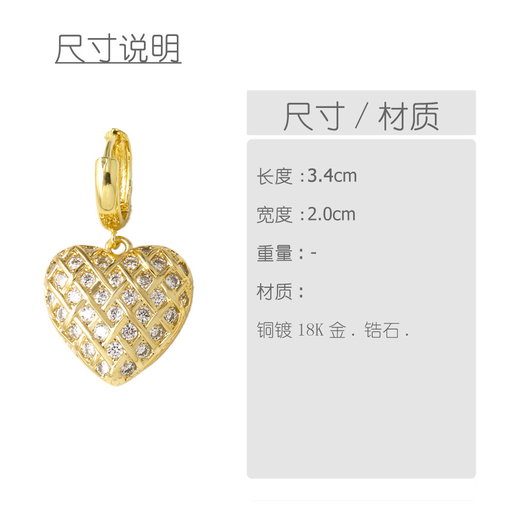 AS jewelry new style inlaid with zircon copper plated 18k gold love heart pendant earrings earrings female era093