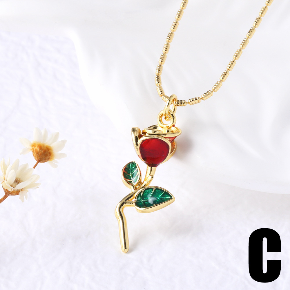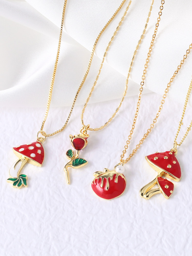 AS jewelry new three-dimensional red mushroom pendant necklace female gold-plated oil drop flower clavicle chain nky27