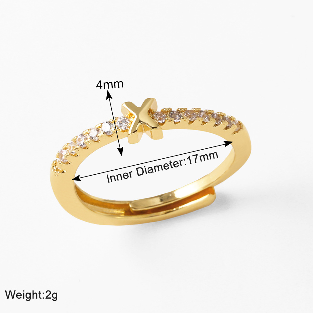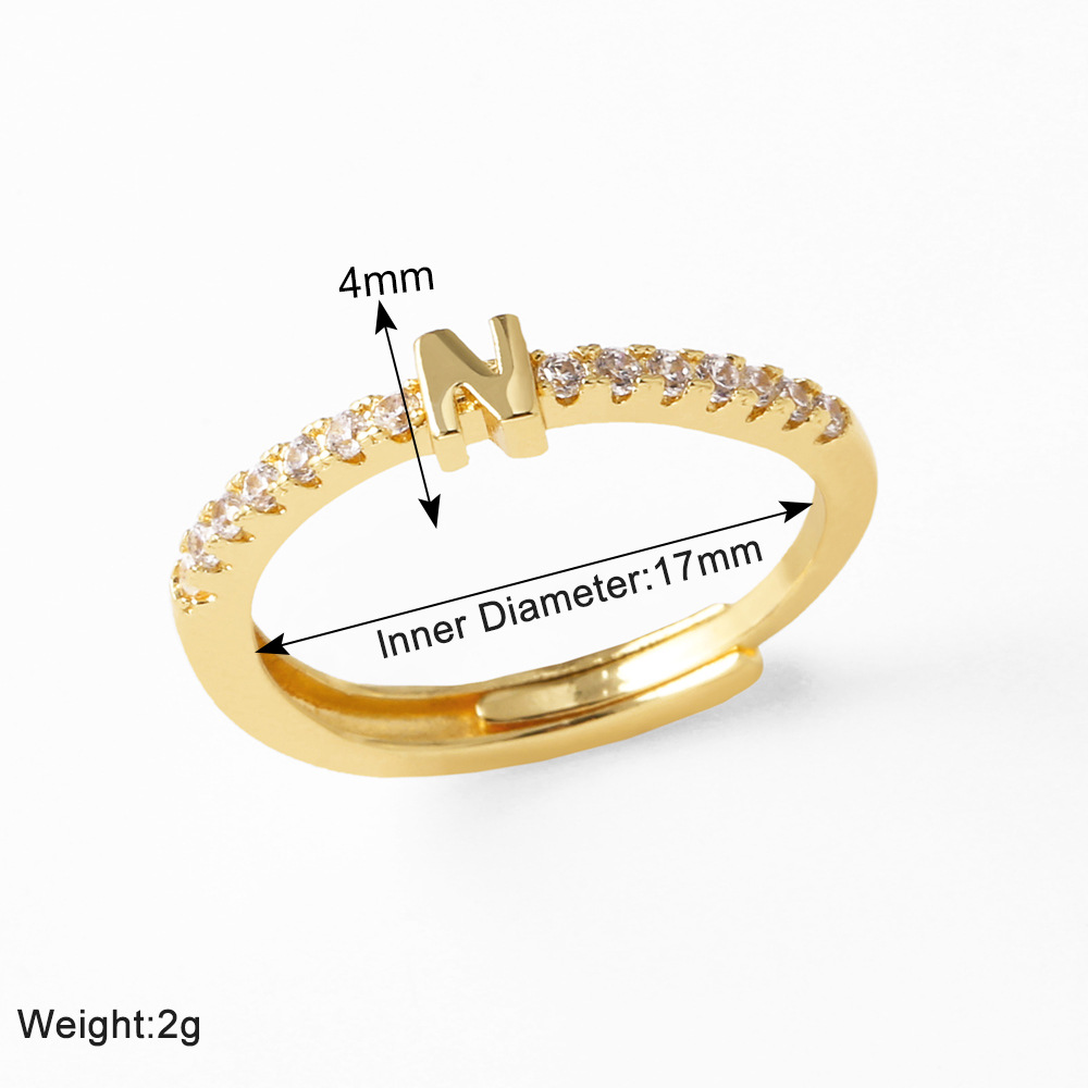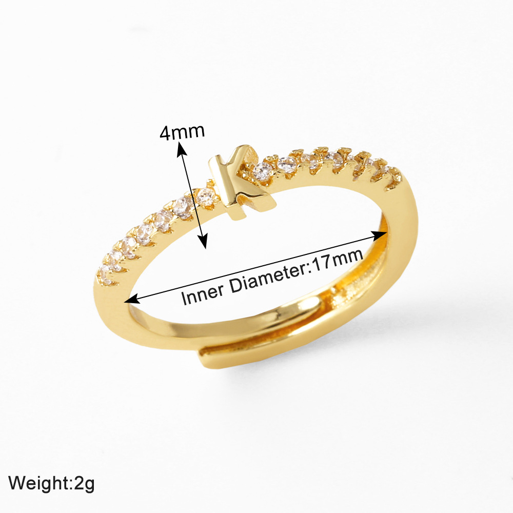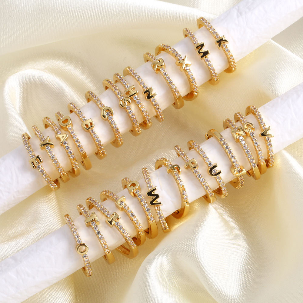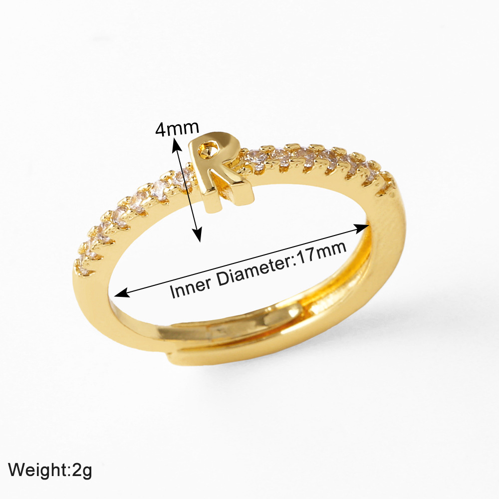AS jewelry new wholesale 26 English letter ring adjustable gold-plated full zircon ring rih98