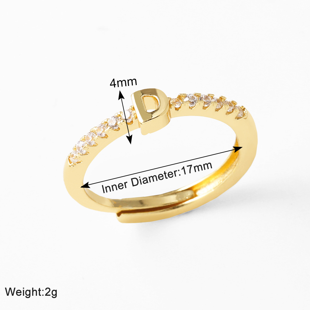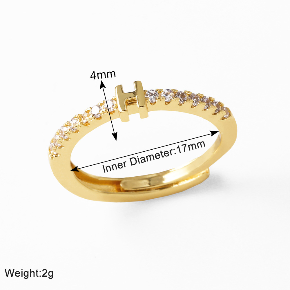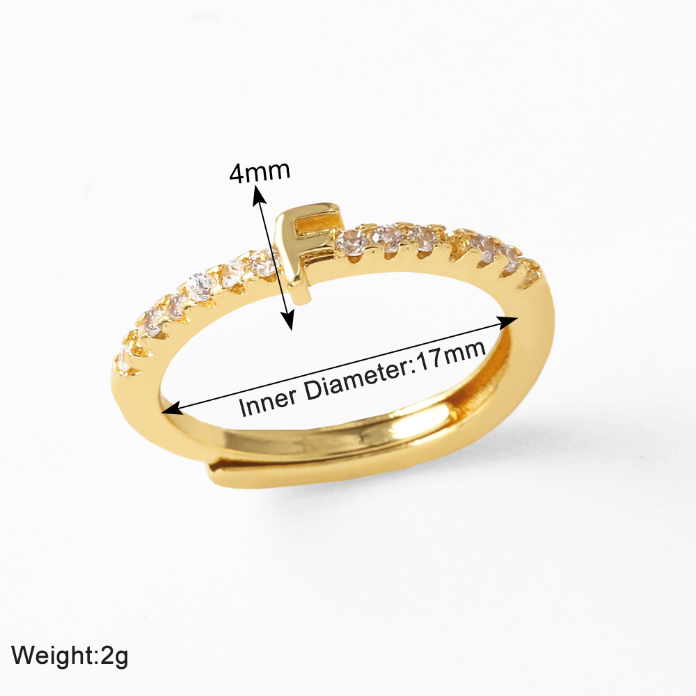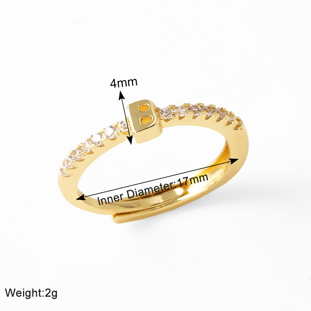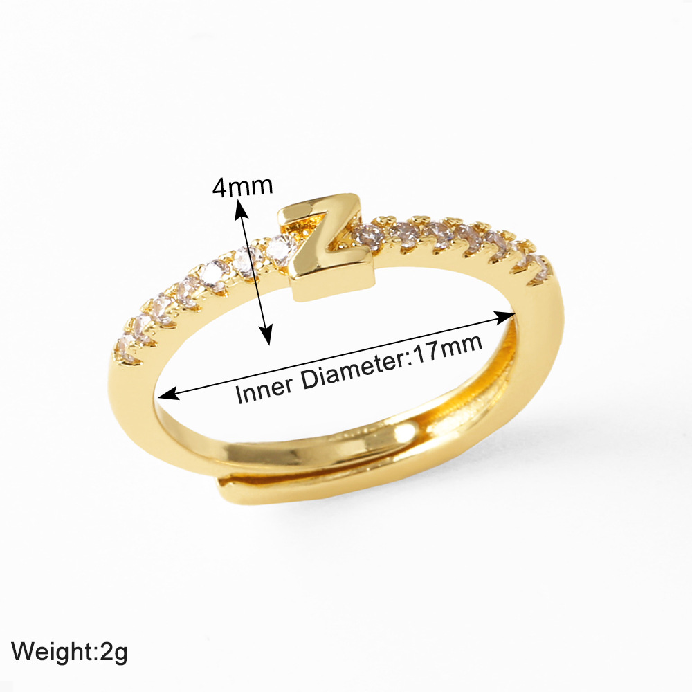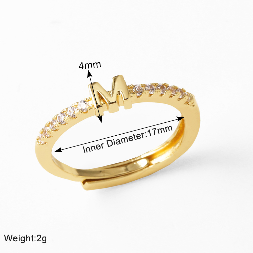AS jewelry new wholesale 26 English letter ring adjustable gold-plated full zircon ring rih98