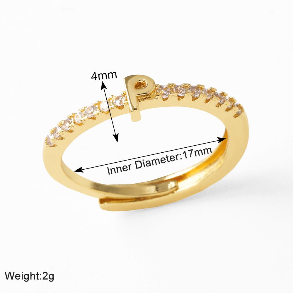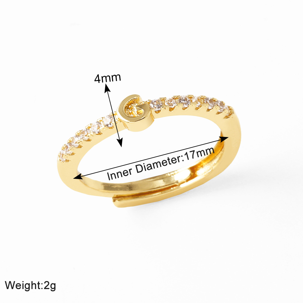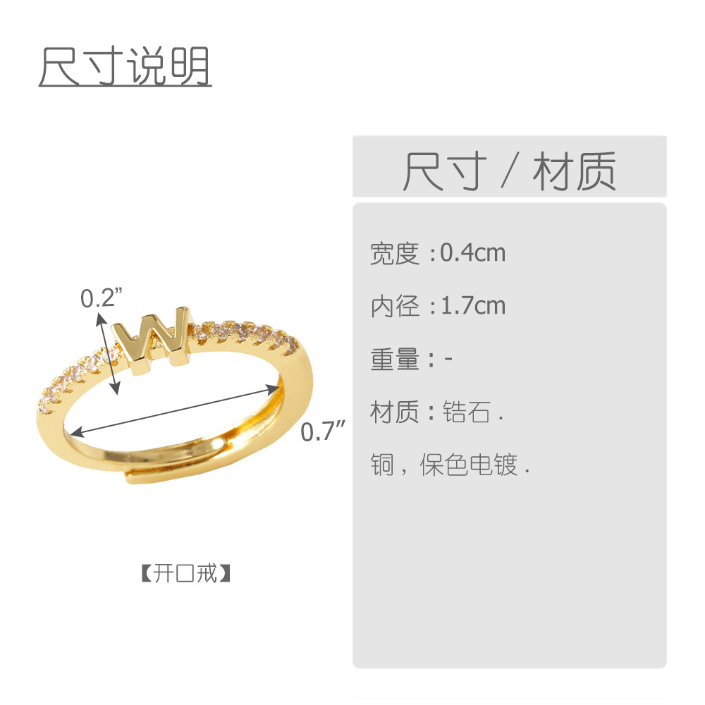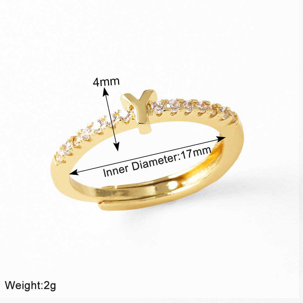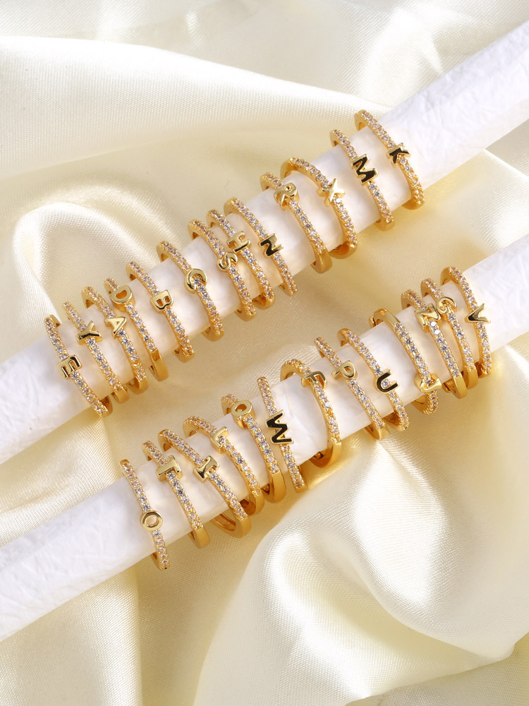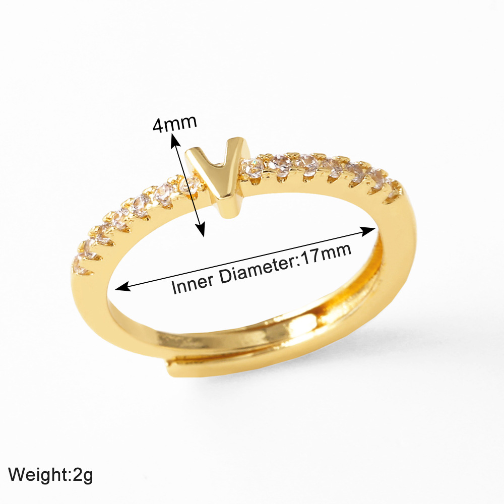 AS jewelry new wholesale 26 English letter ring adjustable gold-plated full zircon ring rih98