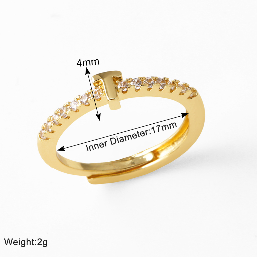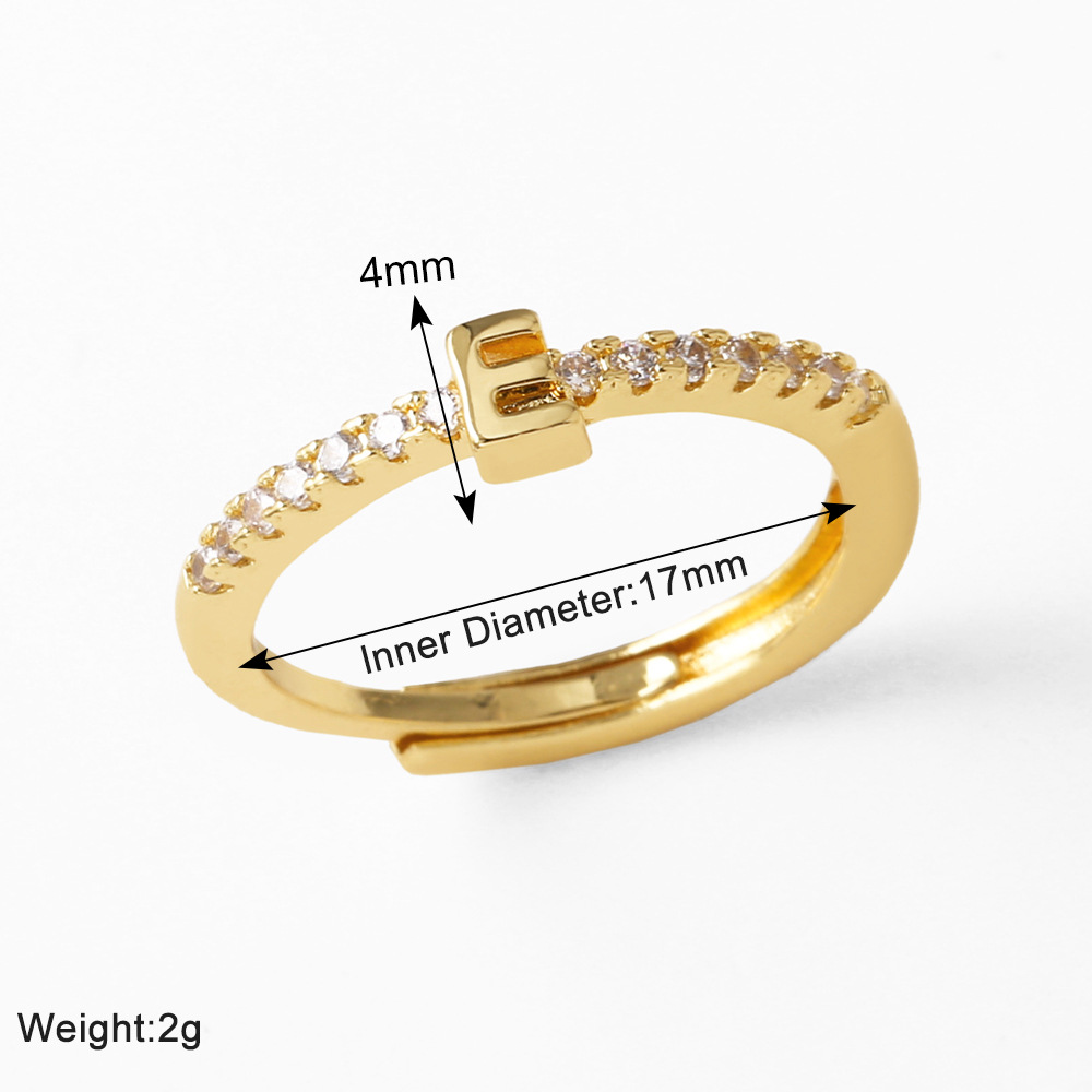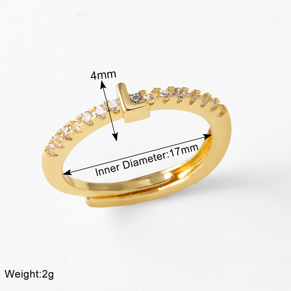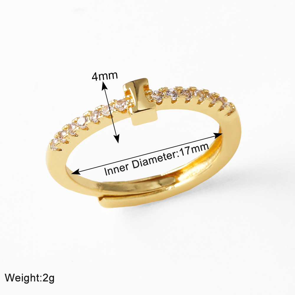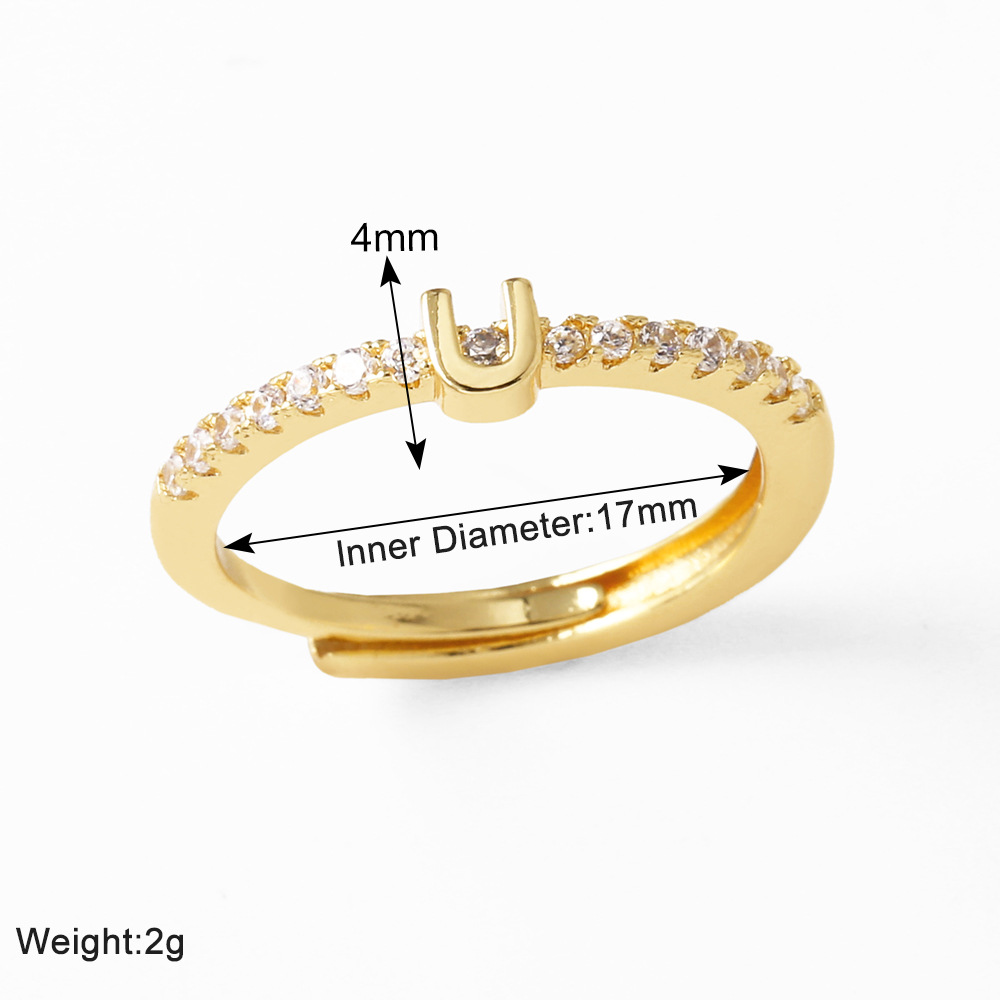 AS jewelry new wholesale 26 English letter ring adjustable gold-plated full zircon ring rih98