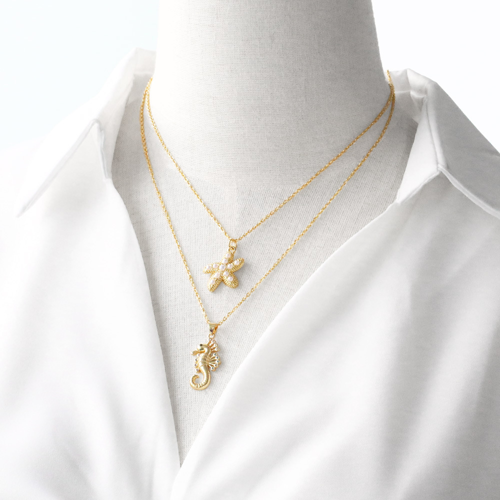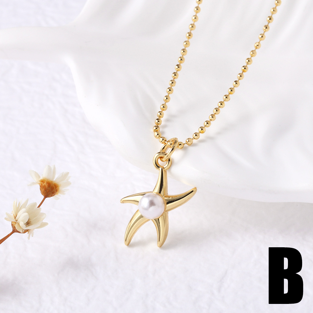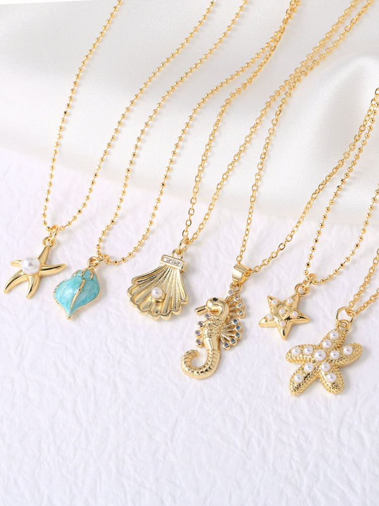 AS jewelry niche design ocean wind pearl starfish conch necklace clavicle chain nkw59