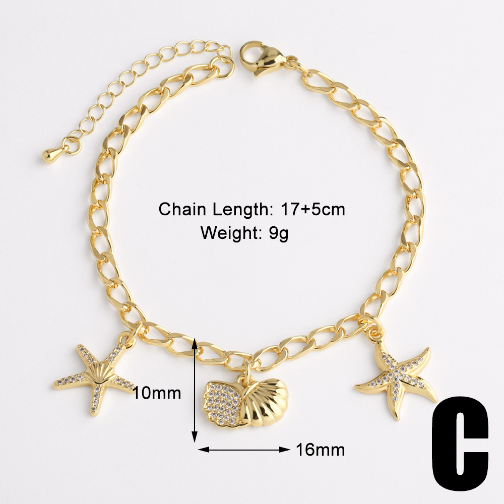 AS jewelry new hot selling ocean style starfish turtle pendant gold-plated bracelet jewelry wholesale brn51