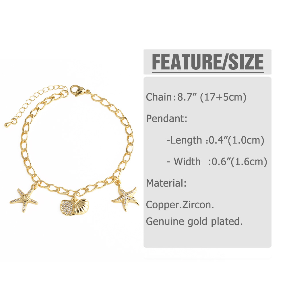 AS jewelry ocean style starfish pendant bracelet copper gold-plated bracelet bra79 bracelet