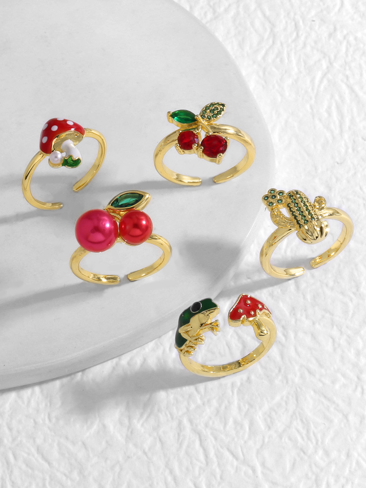 AS jewelry oil drop fruit cherry mushroom ring copper plated 18k gold ring rir43 ring