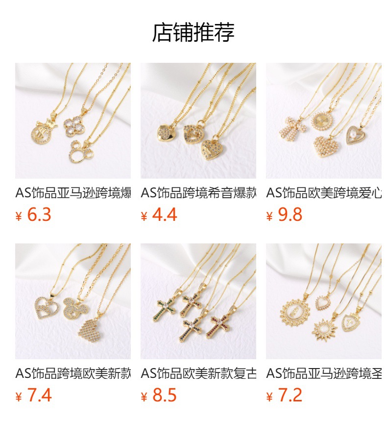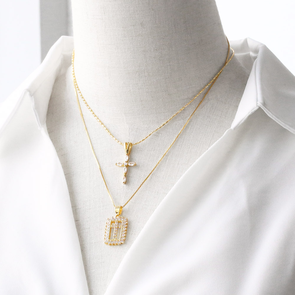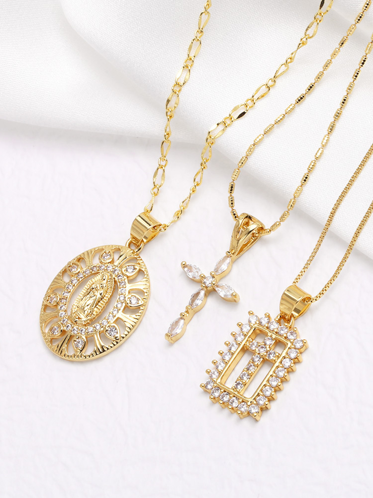 AS jewelry Our Lady cross pendant necklace new copper plated 18k gold clavicle chain nkb336