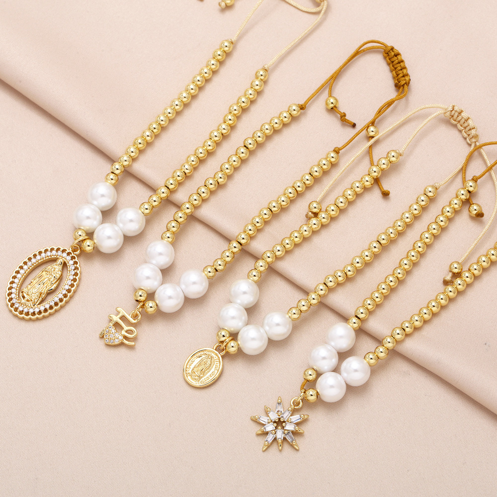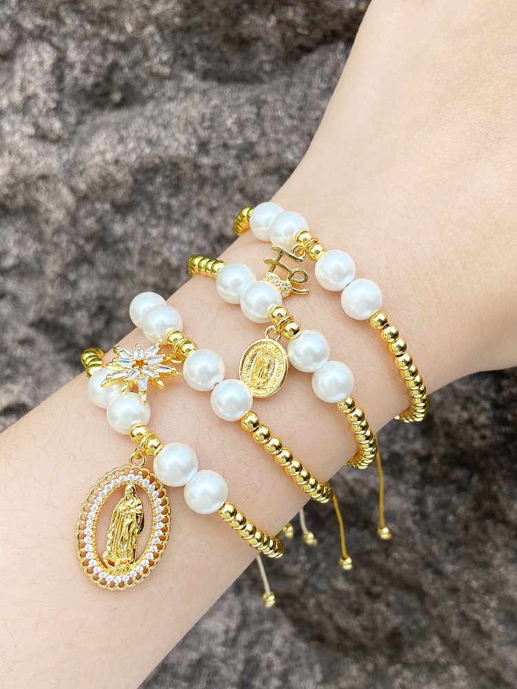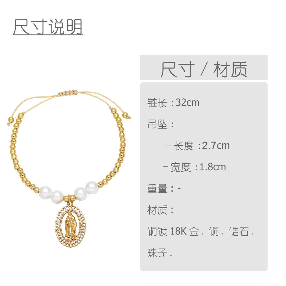 AS jewelry Our Lady pendant bracelet copper plated real gold inlaid zircon hand pearl hand jewelry bre12