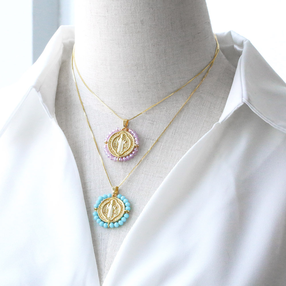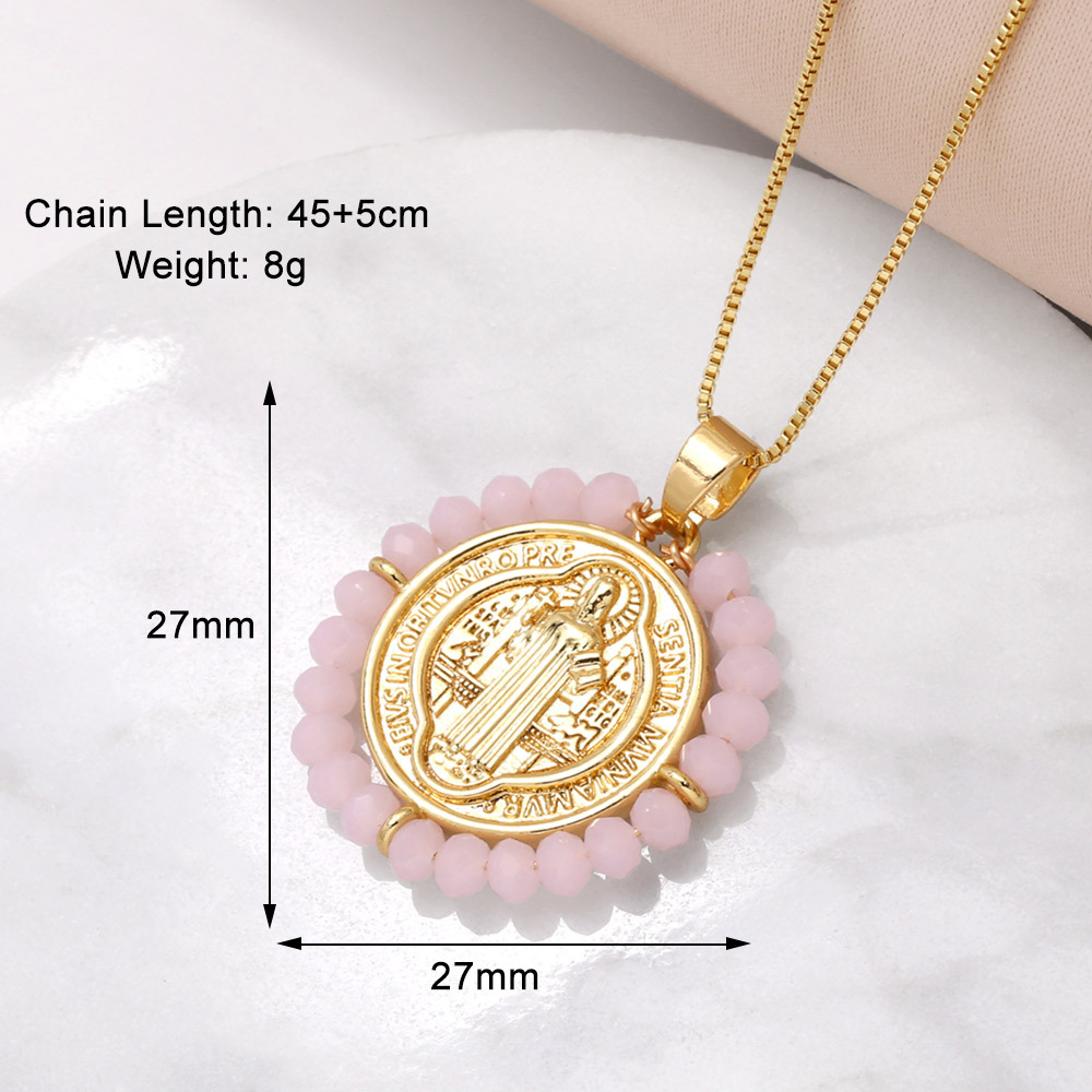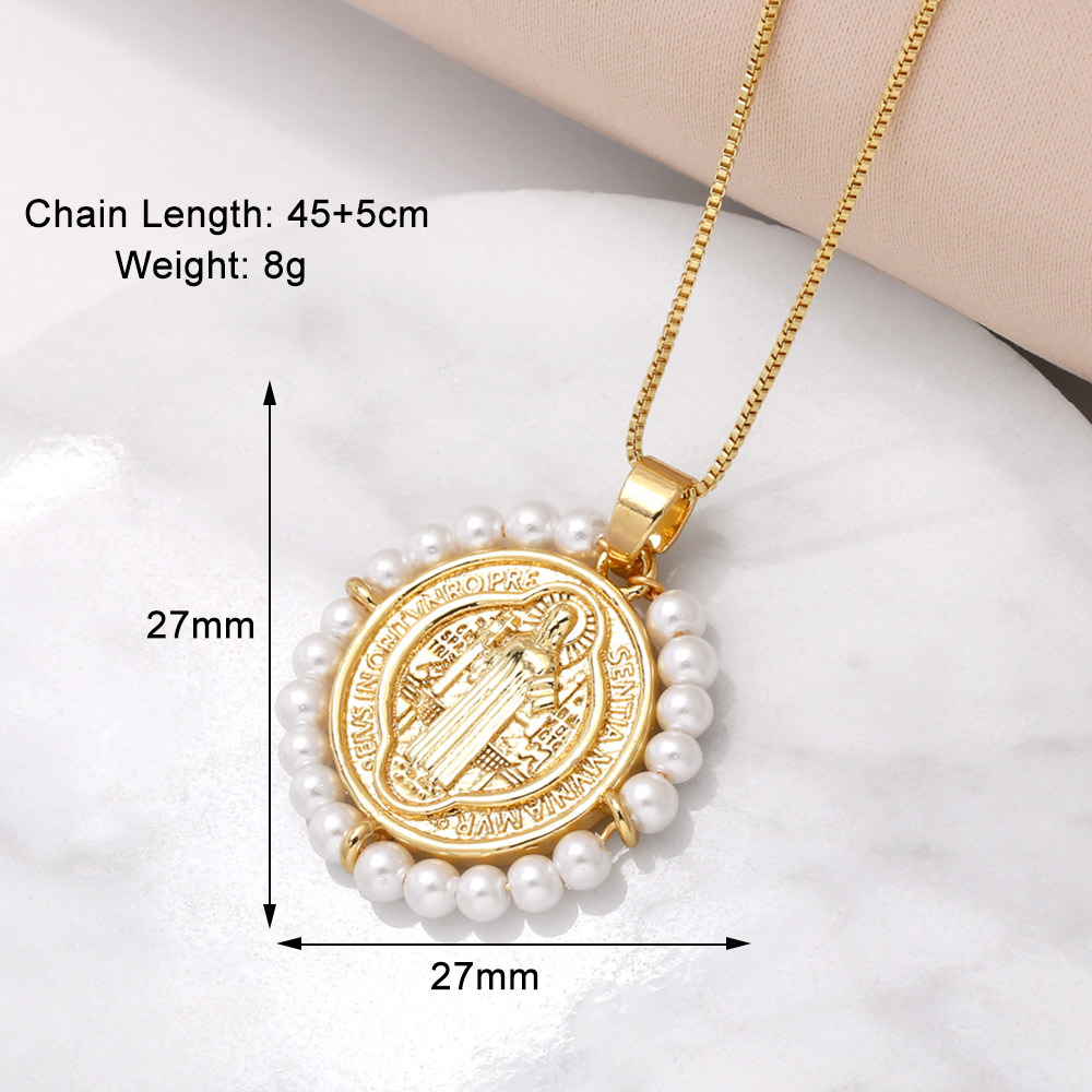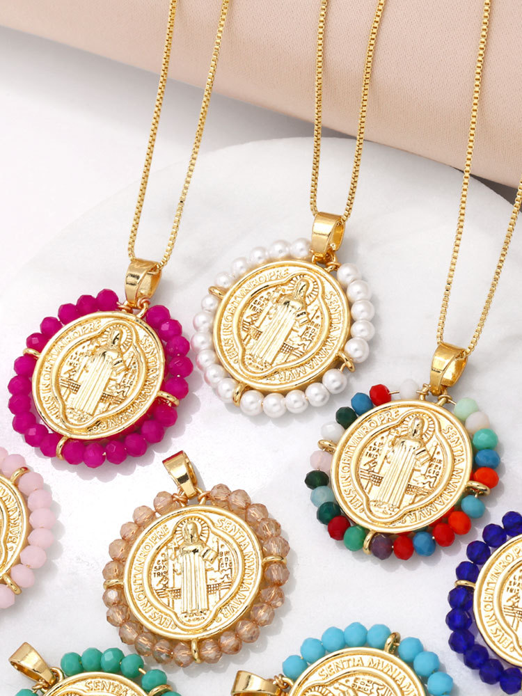 AS jewelry Our Lady pendant necklace female retro high-end gold-plated rice bead clavicle chain nkv59