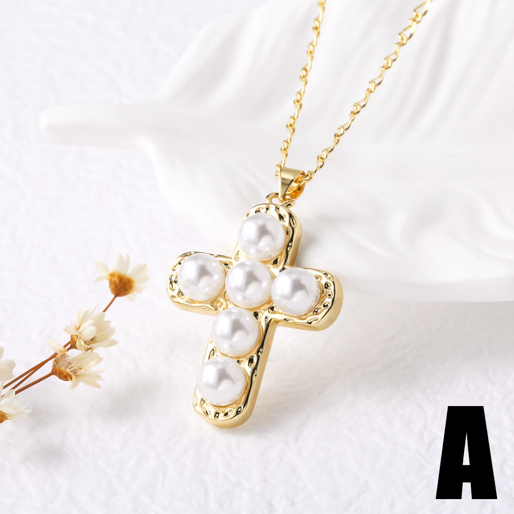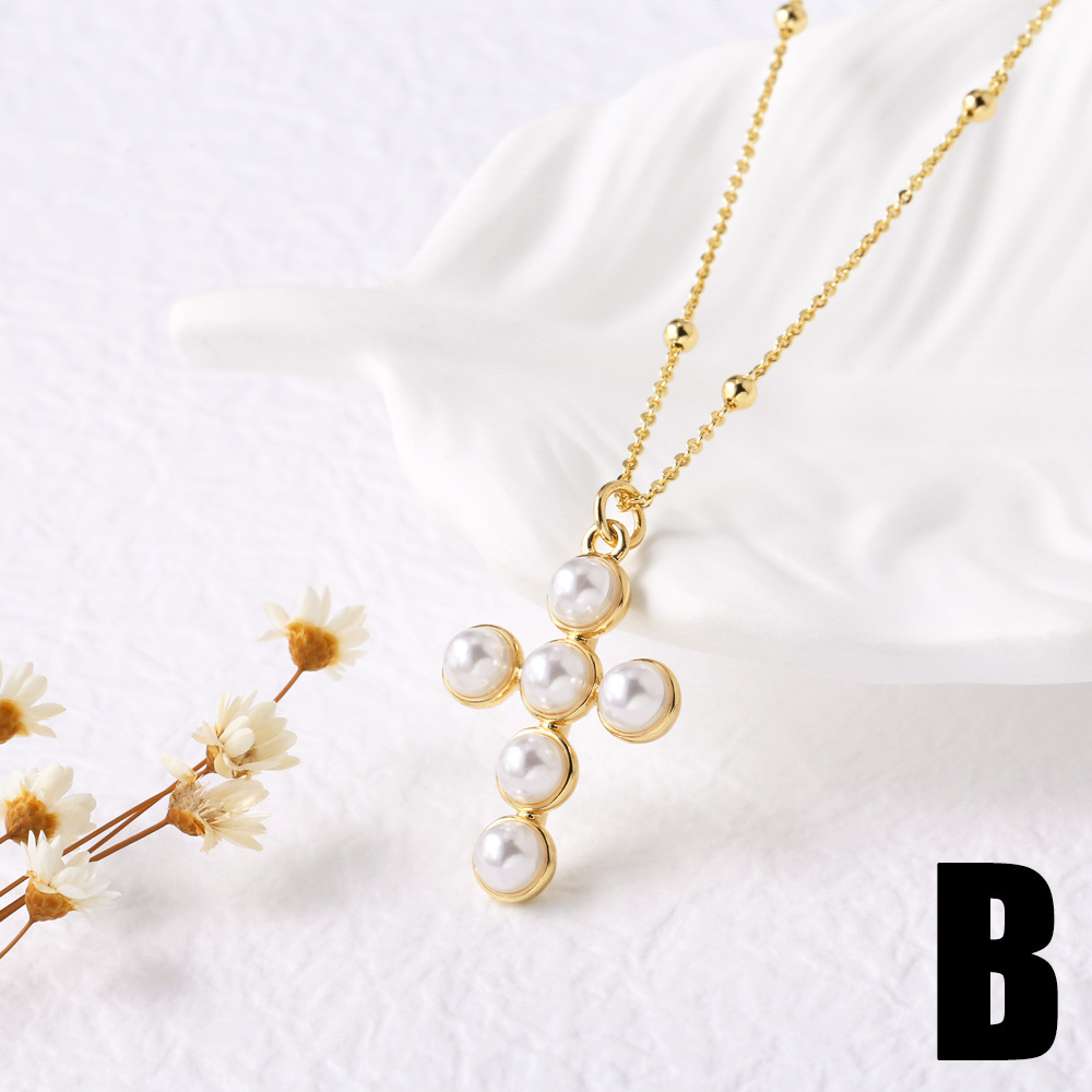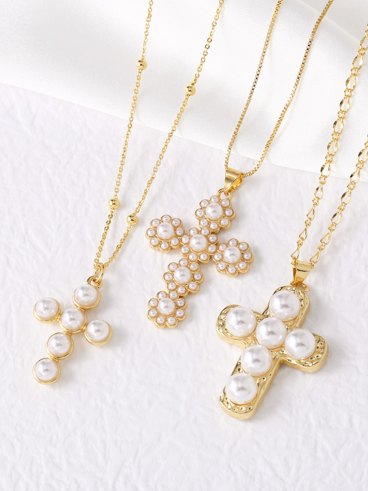 AS jewelry pearl cross inlaid zircon pendant necklace clavicle chain nka079necklace