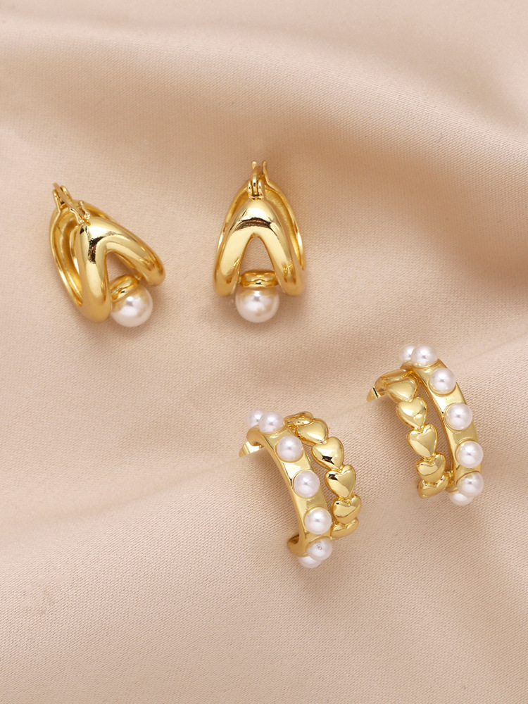 AS jewelry pearl earrings women's high-end copper plated real gold C-shaped earrings earrings era044