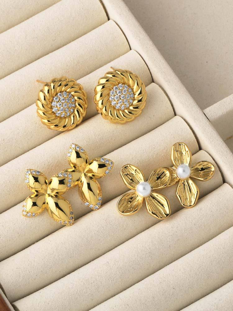AS jewelry pearl flower earrings gold-plated zircon round earrings earrings erz54