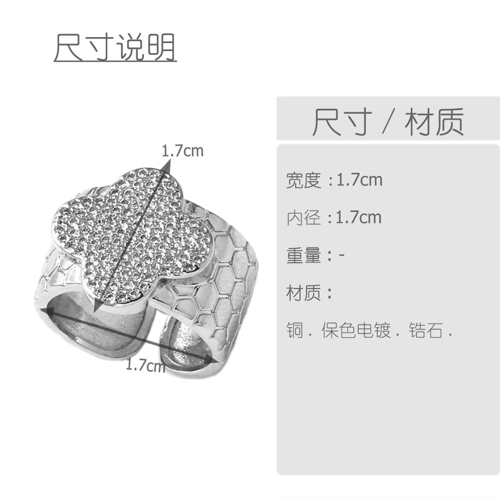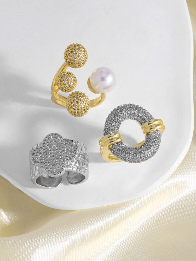 AS jewelry pearl four-leaf clover open ring female full zircon copper plated 18k gold ring rir12