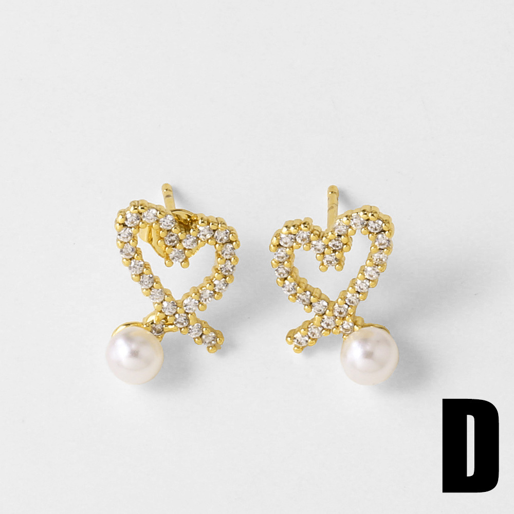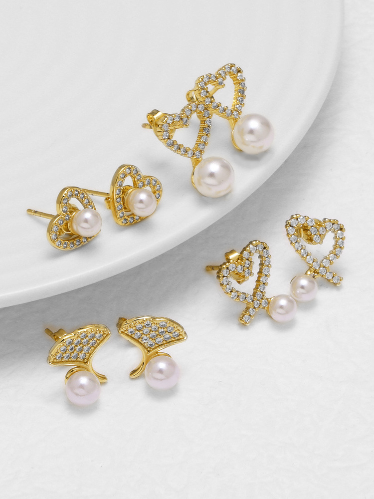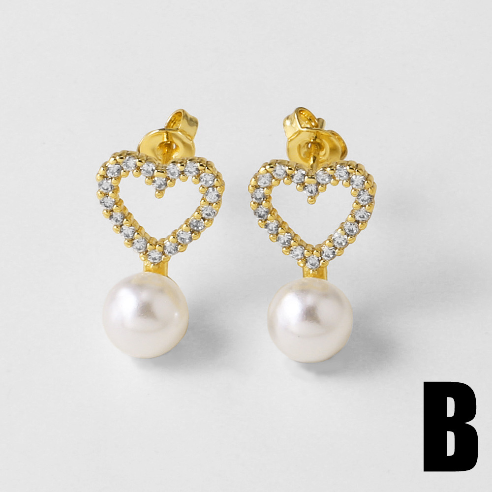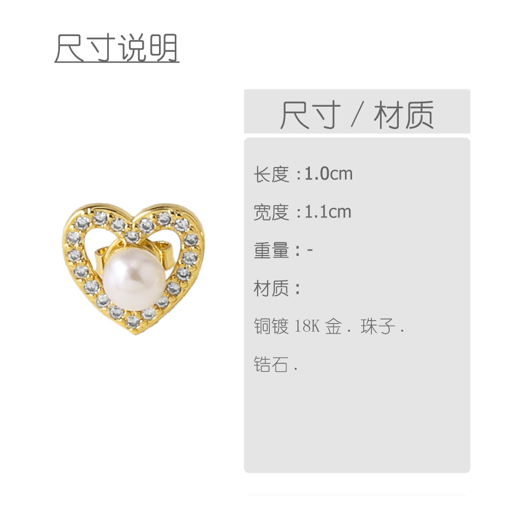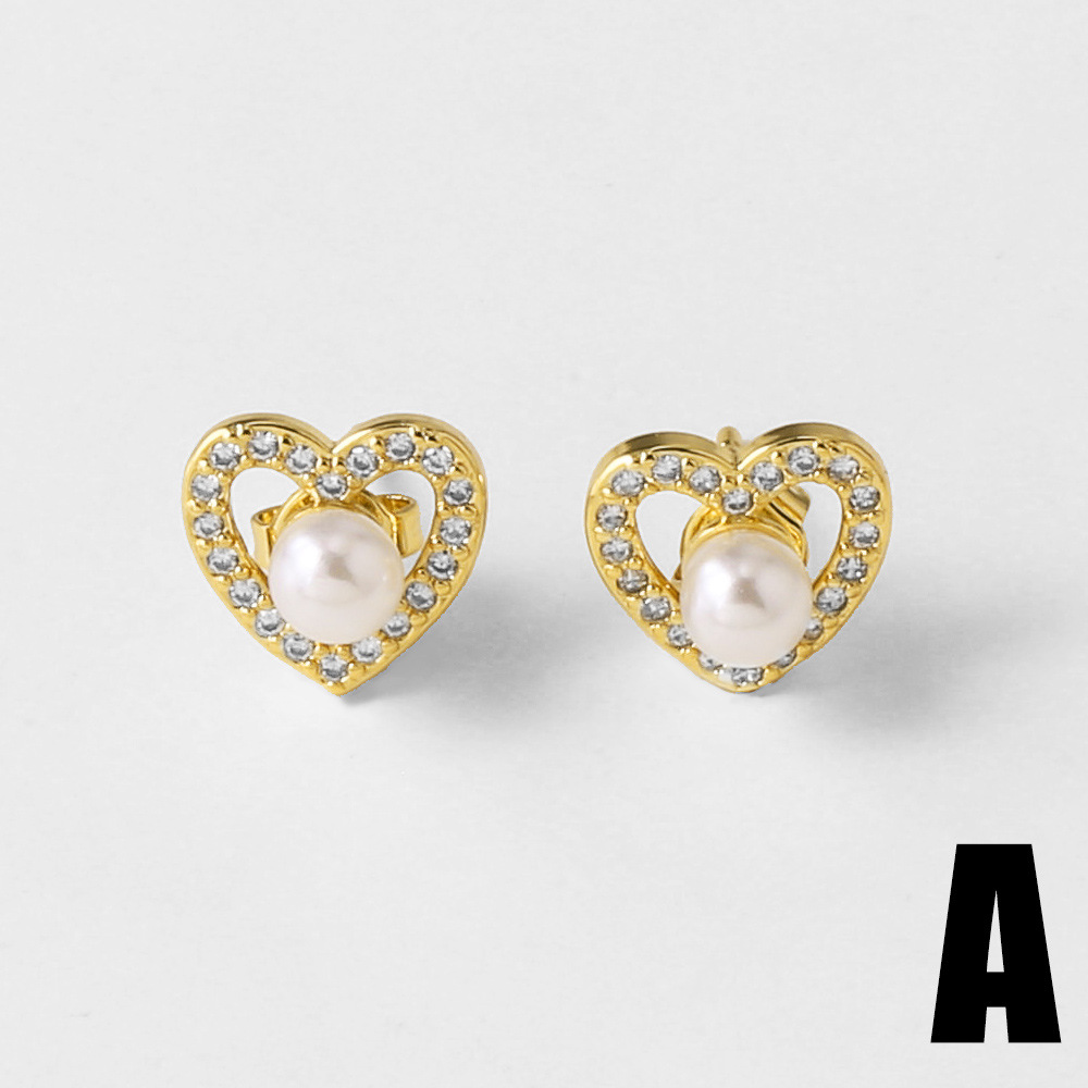 AS jewelry pearl heart earrings copper plated real gold inlaid zircon heart-shaped earrings earrings era244