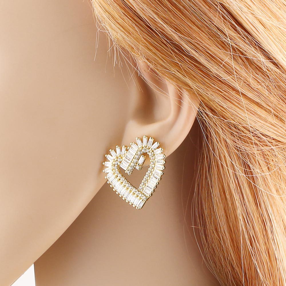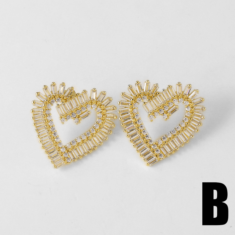 AS jewelry micro-inlaid zircon earrings copper plated 18k gold love heart earrings earrings female ery08