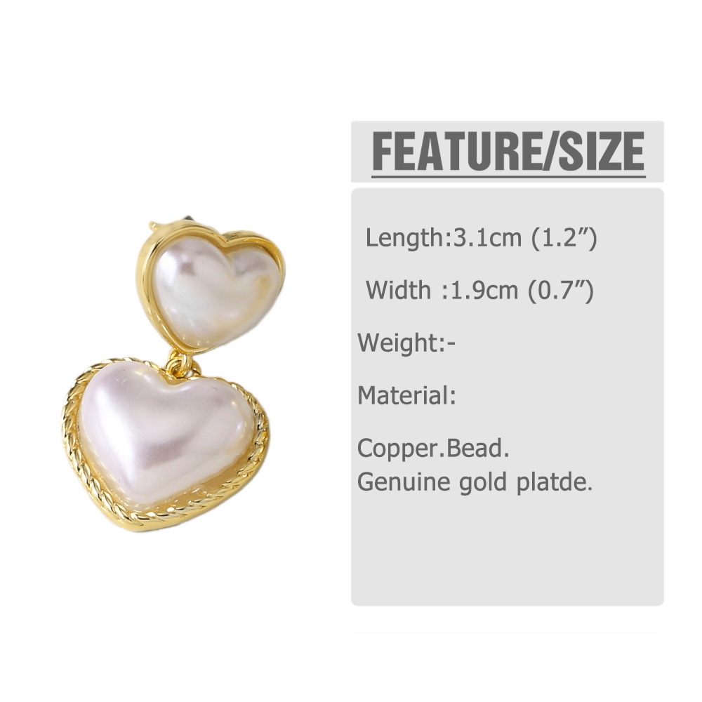 AS jewelry pearl heart earrings copper plated real gold micro inlaid zircon earrings era259