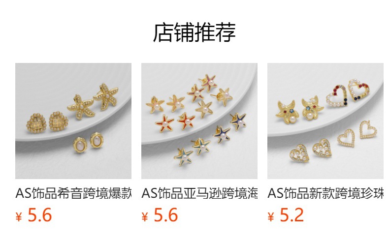 AS jewelry new pearl starfish love earrings copper plated 18k gold micro inlaid zircon earrings earrings ery63