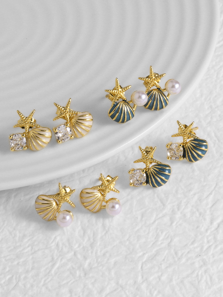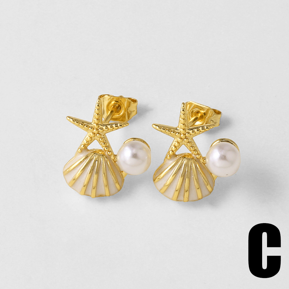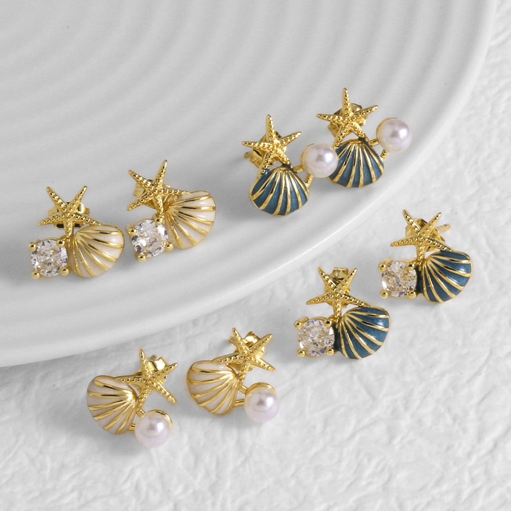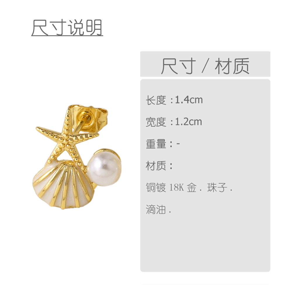 AS jewelry pearl oil drop shell earrings female copper plated real gold starfish earrings erz67