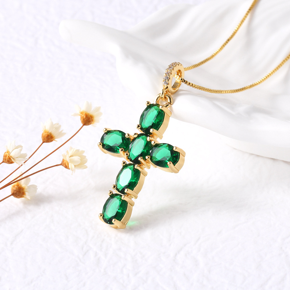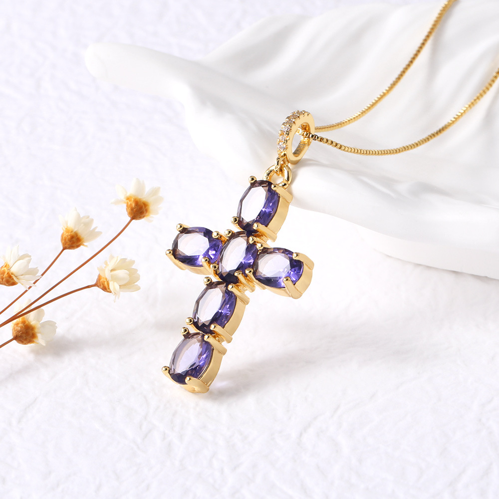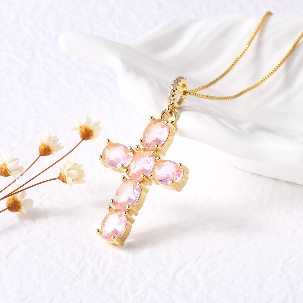 AS jewelry popular color cross pendant necklace gold-plated zircon sweater chain nkb341