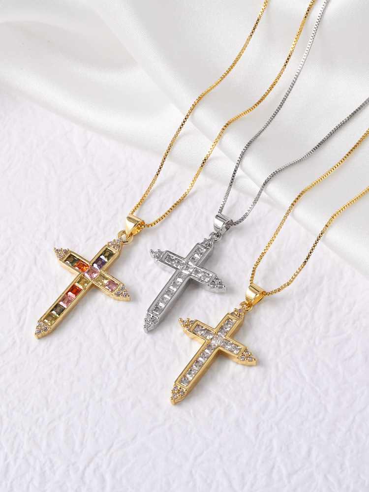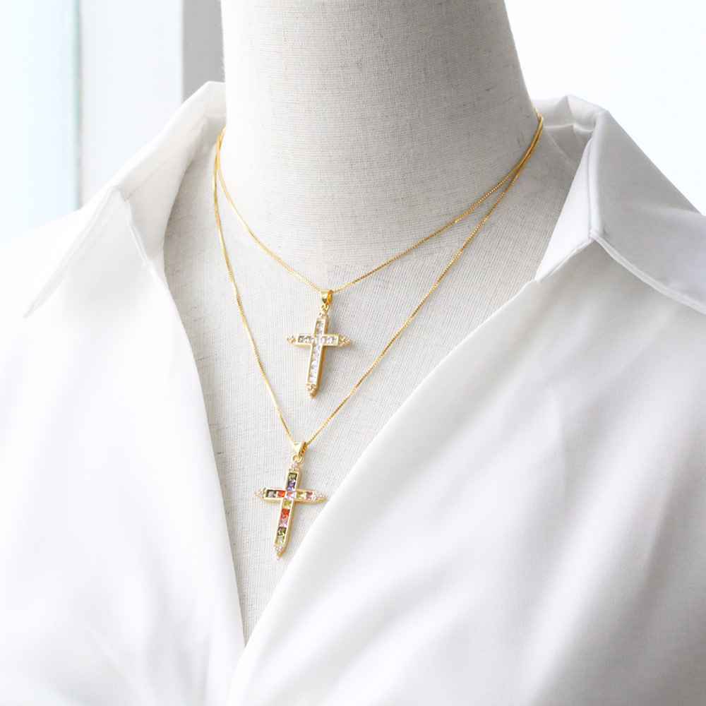 AS jewelry popular cross pendant necklace female copper plated 18k gold clavicle chain nka006