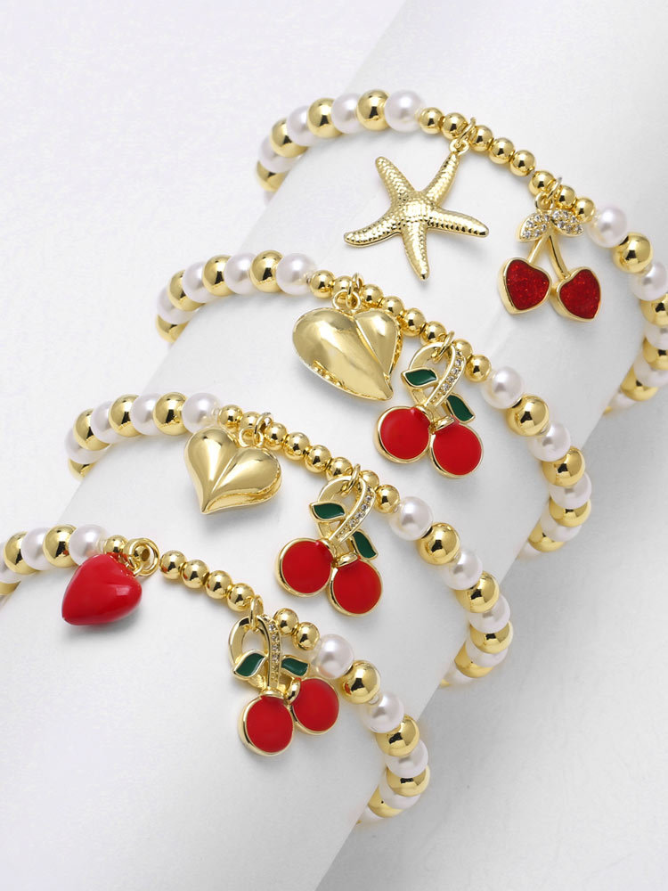 AS jewelry popular fruit cherry love pendant bracelet pearl bracelet hand jewelry female brm95