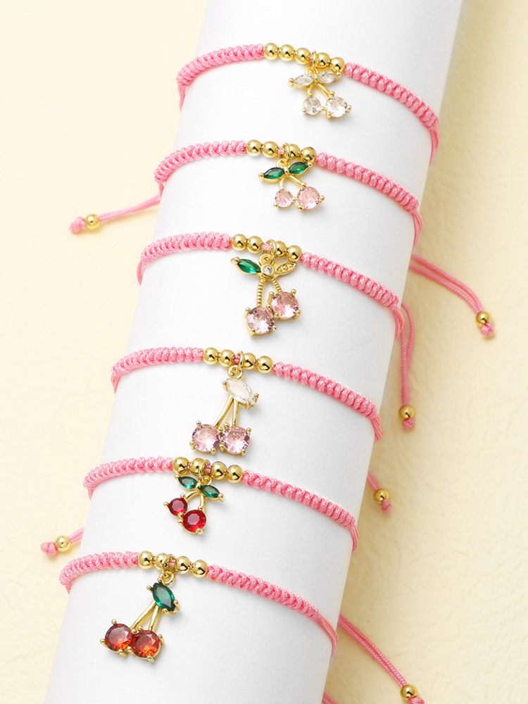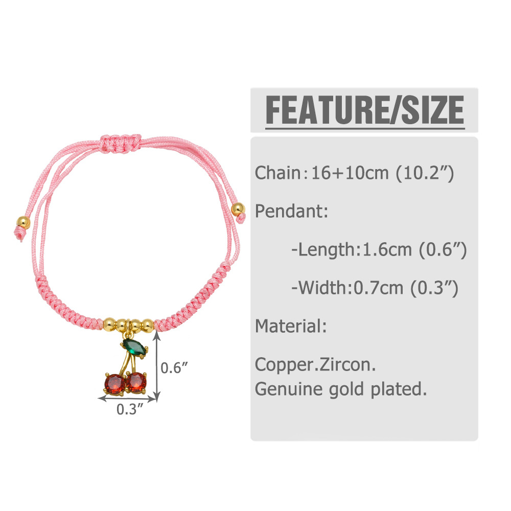 AS jewelry popular fruit cherry pendant bracelet female woven adjustable hand rope brd94