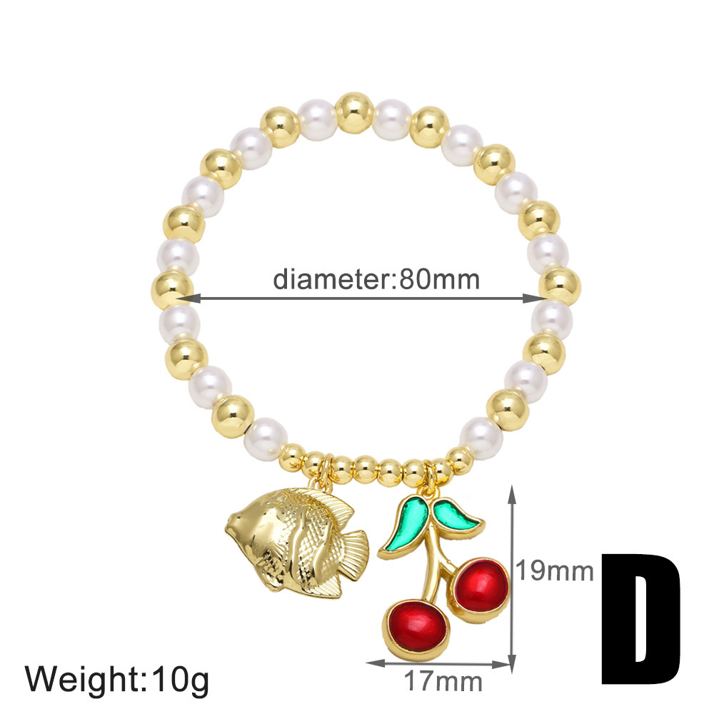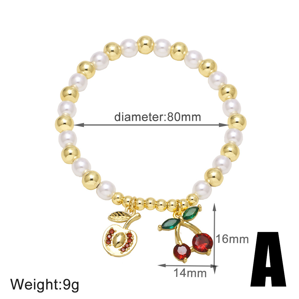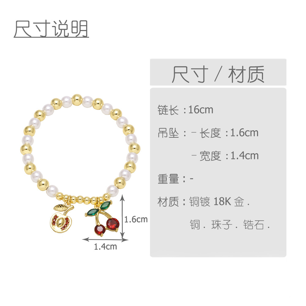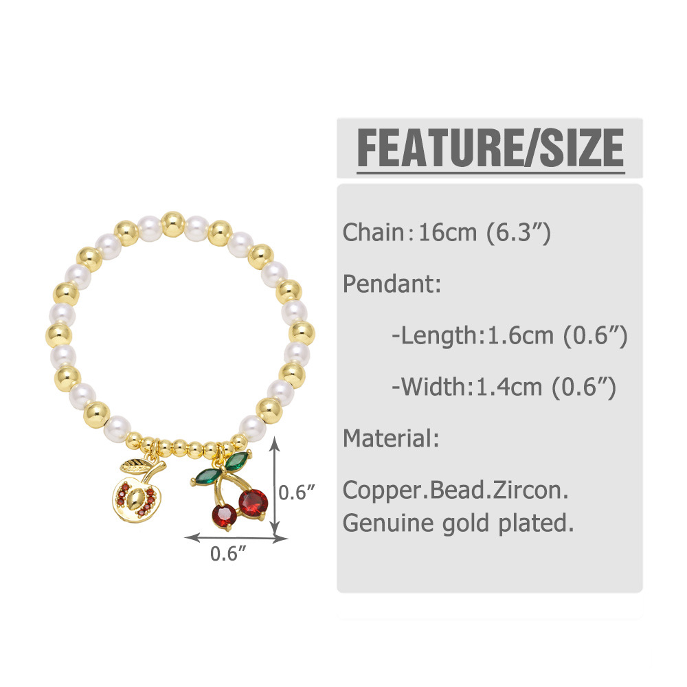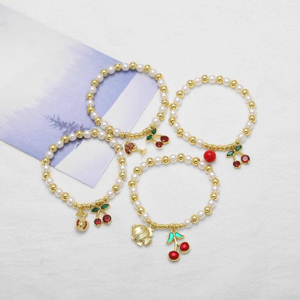 AS jewelry popular pearl bracelet copper plated 18k gold fruit cherry pendant bracelet jewelry brj51